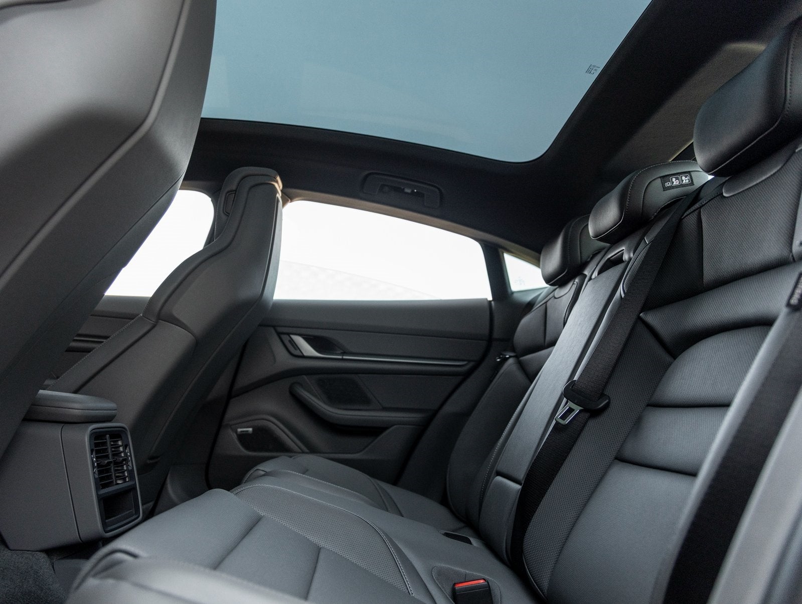 • Fixed Panoramic Roof in Glass: Adds light and openness to the cabin while emphasizing the Taycans sleek profile.
