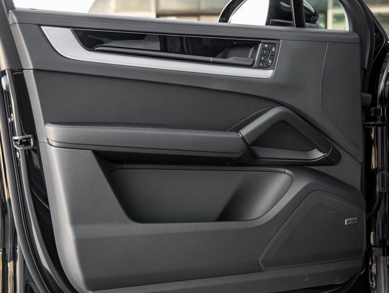 The Cayenne E-Hybrid Coupe stands as a beacon of design and performance, its Chromite Black Metallic exterior not just a color, but a badge of honor that reflects Porsche's illustrious legacy. Adorned with 21 RS Spyder Design Wheels in Satin Black and Exclusive Design Taillights, it presents a bold and confident stance. The Sport Tailpipes in Dark Bronze add a subtle yet aggressive note, while Under Door Puddle Light Projectors enhance its presence in the dark.
