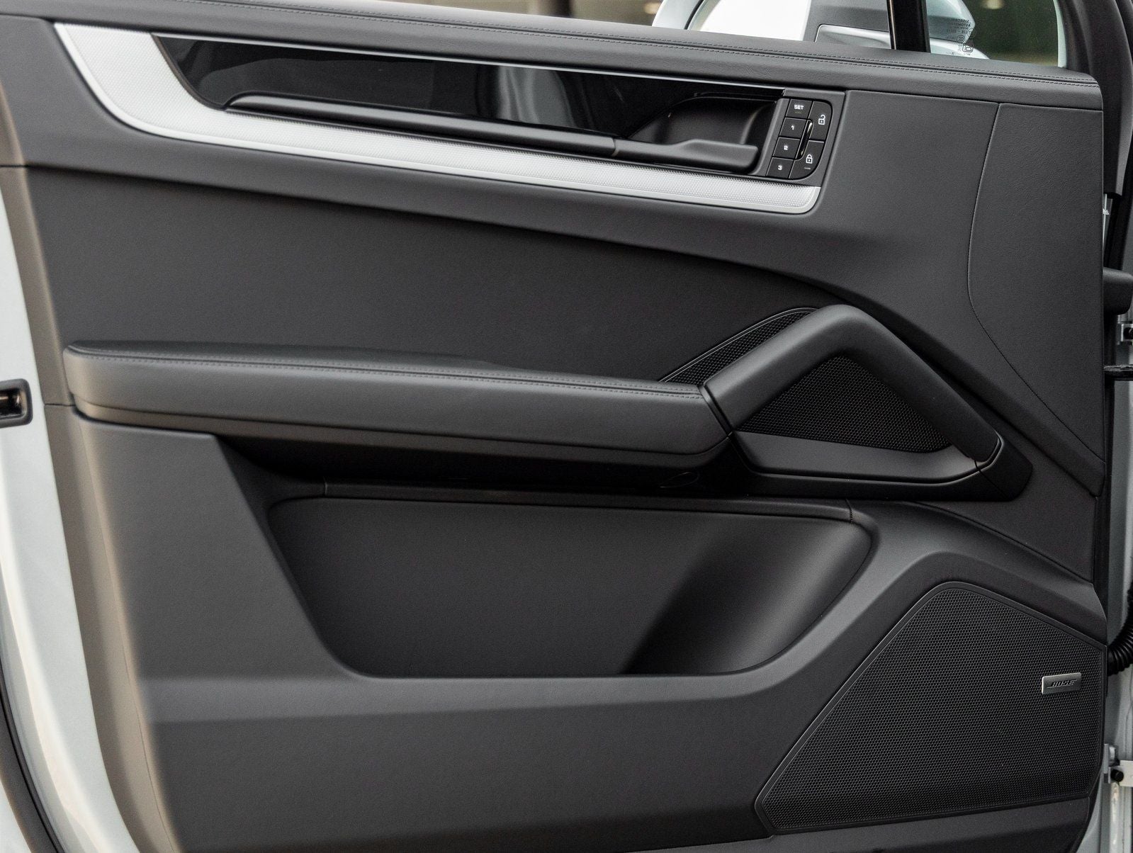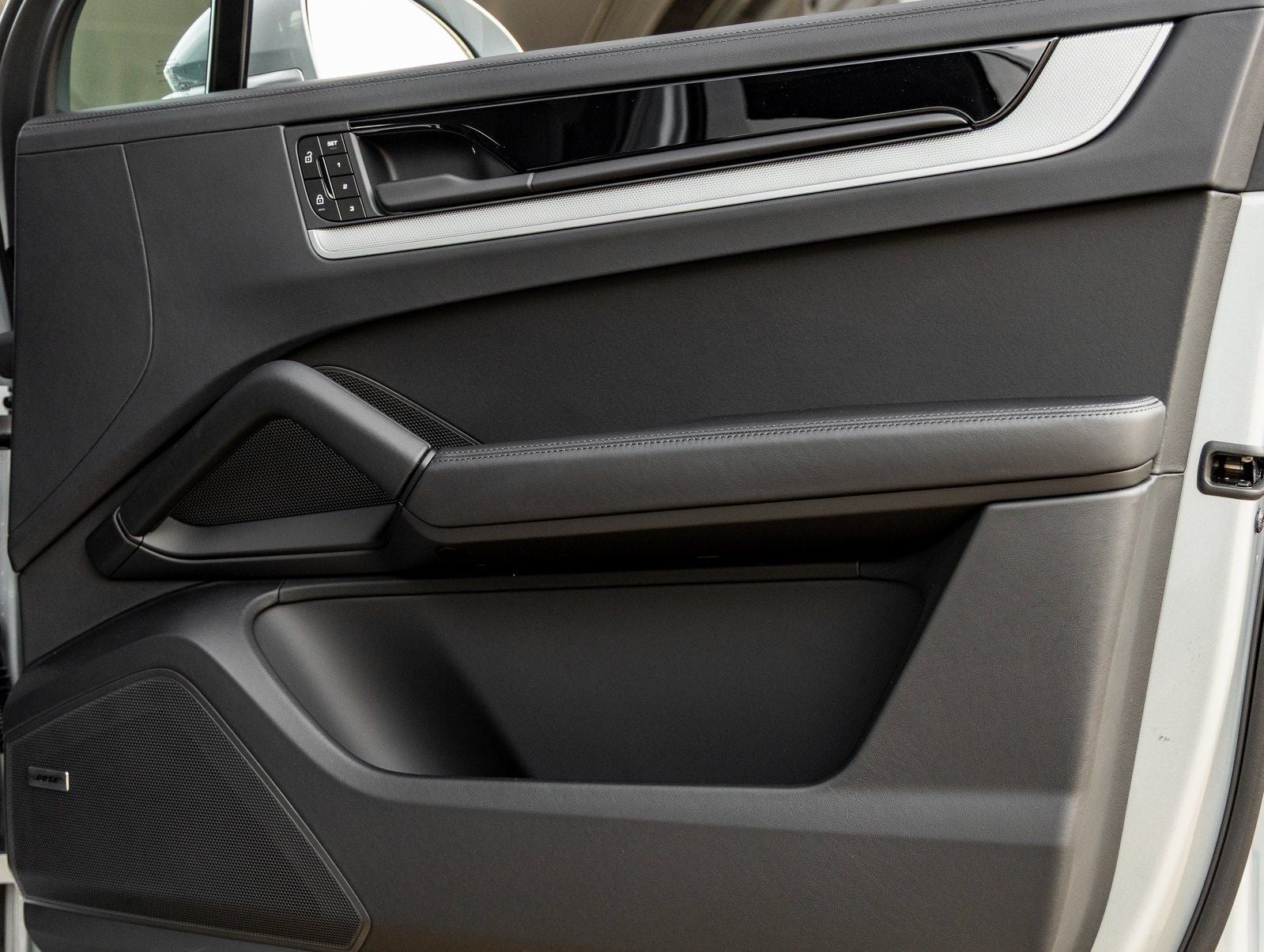 The Cayenne S makes a striking impression with its SportDesign Front Fascia, 21 RS Spyder Design Wheels, and Dolomite Silver Metallic finish. Roof Rails in Black Aluminum, Window Trim in High Gloss Black, and Exterior Mirrors in Body Color further enhance its bold, cohesive look.