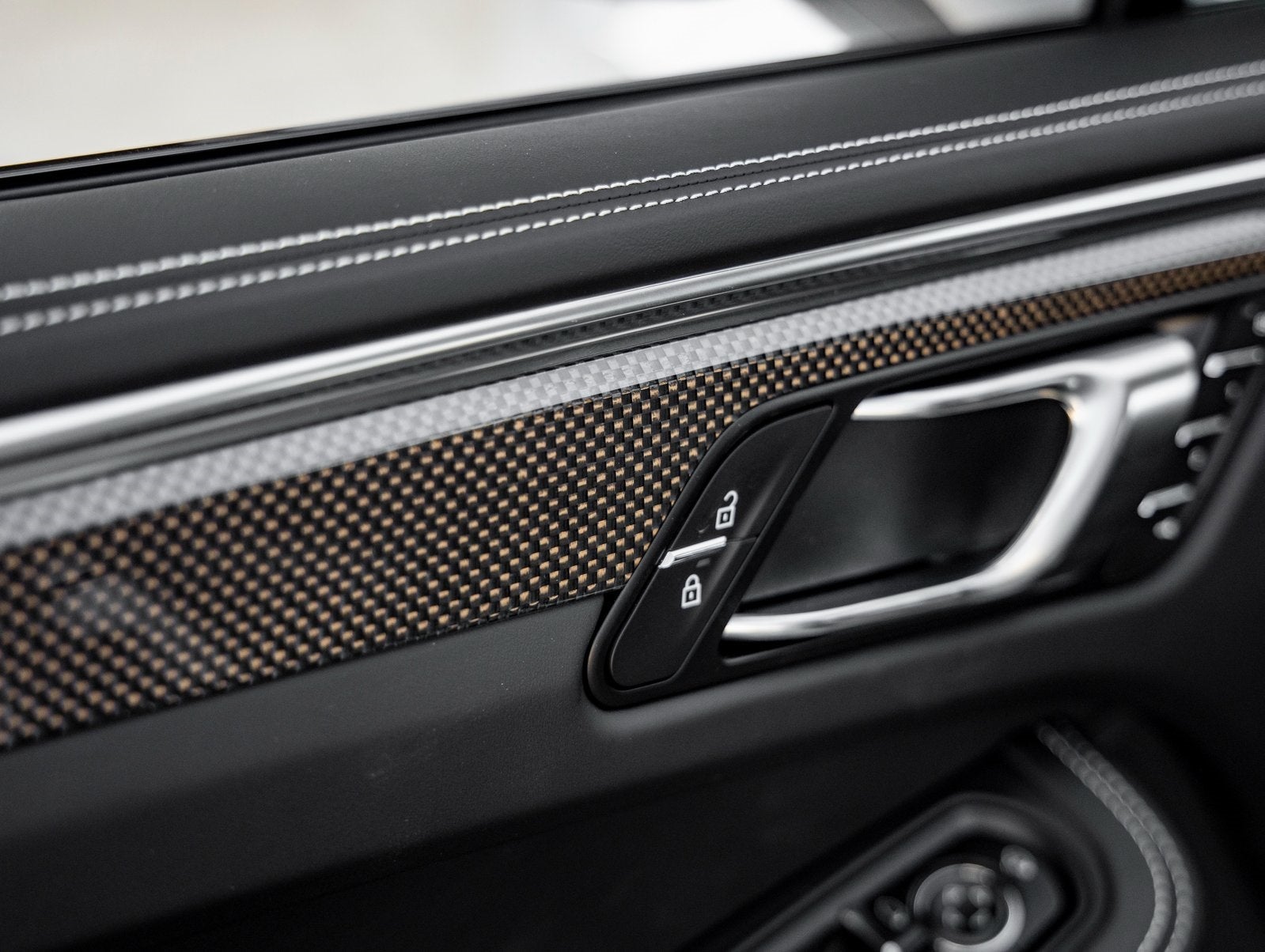 Step inside and you are greeted by a meticulously crafted Leather Interior in Black with Deviated Stitching in Chalk, creating a sophisticated yet sporty atmosphere. Adaptive Sport Seats Plus (18-way) with Memory Package provide exceptional comfort and support, complemented by ventilated front seats and heated rear seats. Carbon Fiber interior trim, a Race-Tex roof lining, illuminated carbon fiber door-sill guards, and the Porsche Crest embossed on the headrests elevate the cabin with unmistakable GTS character.