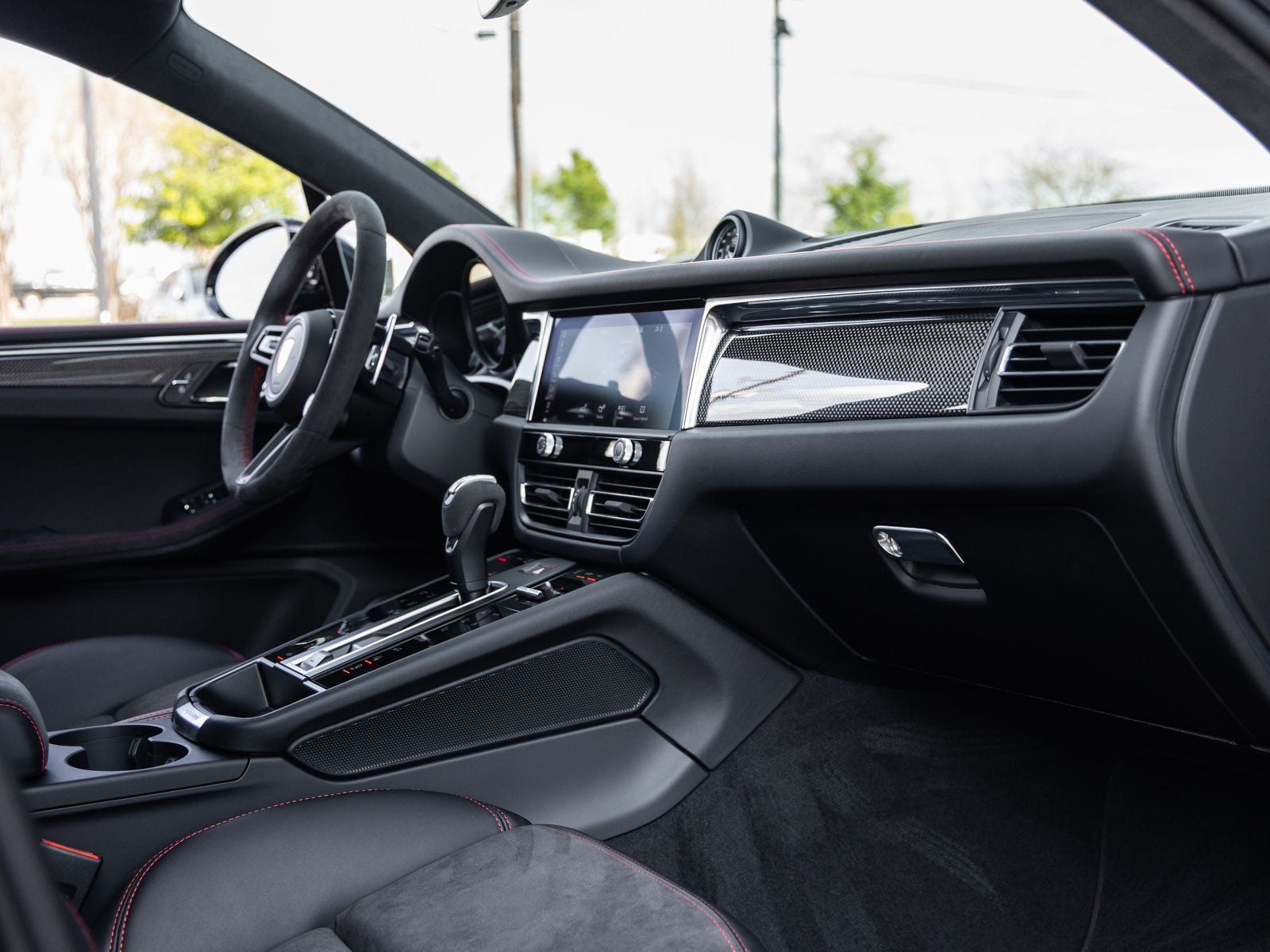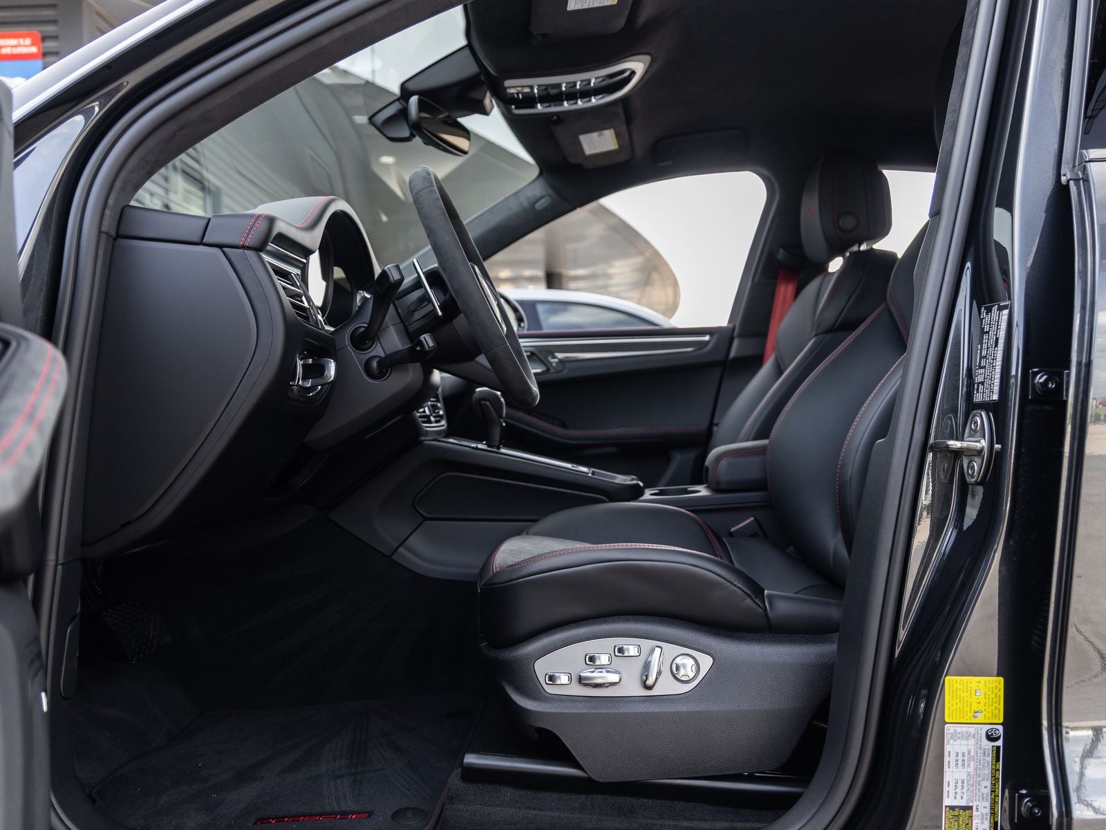 The Macan GTS stands as a bold expression of Porsches performance-focused SUV design, its Volcano Grey Metallic exterior highlighting aggressive styling and athletic proportions. The GTS Sport Package enhances its commanding presence with a front apron in Black (satin-gloss), SportDesign Side Skirts, and a lower rear fascia trim in High Gloss Black. Riding on striking 21-inch GT Design Wheels in Satin Black and featuring GTS side blades in Satin Black, this Macan delivers unmistakable Porsche performance presence.