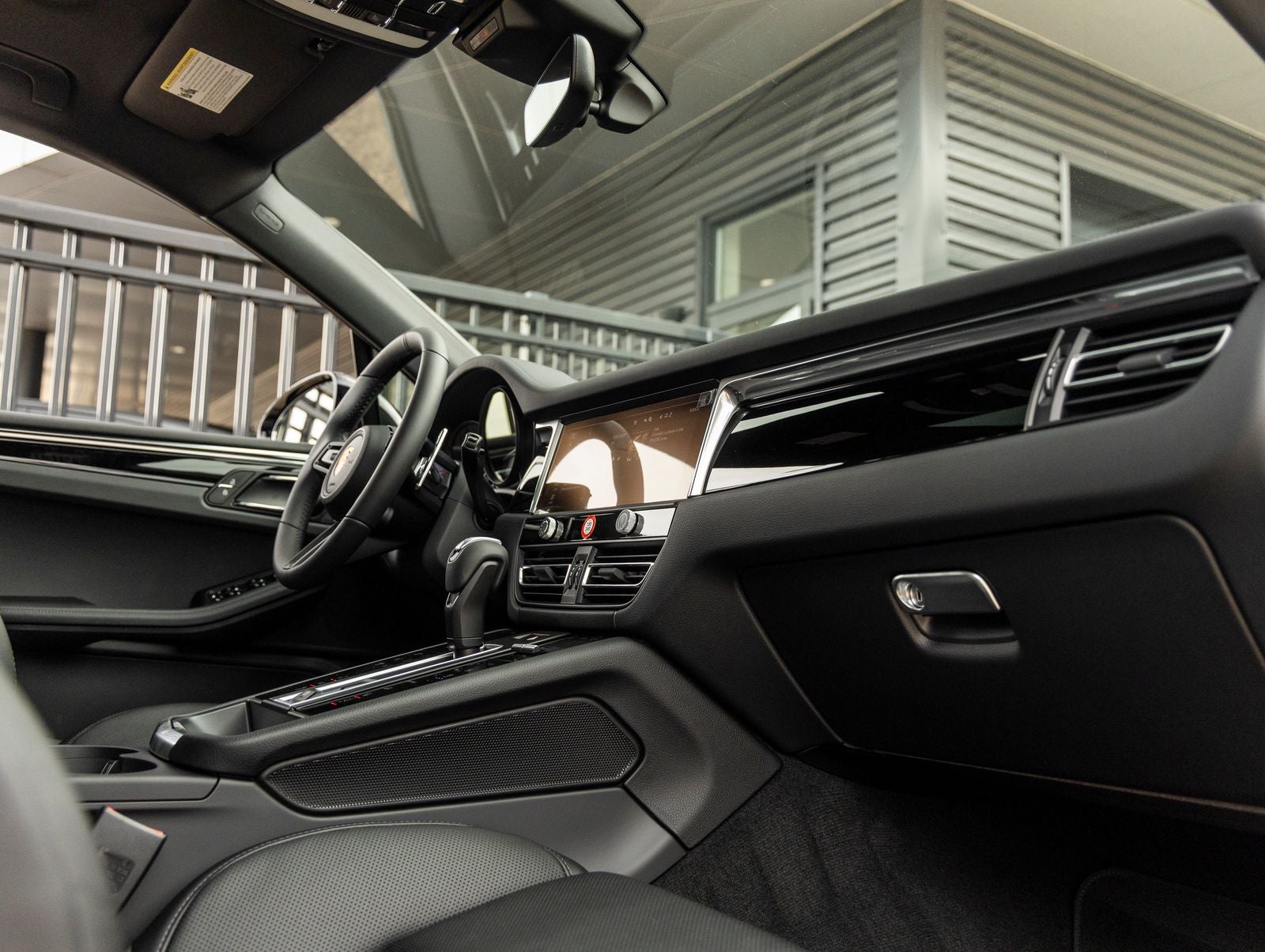 The Macan S stands as a beacon of modern Porsche design, its sleek Black exterior projecting sophistication and athleticism. Equipped with 21-inch 911 Turbo Wheels, LED Headlights including Porsche Dynamic Light System Plus (PDLS+), and High Gloss Black Window Trim, it commands attention from every angle. Details like Side Blades painted in Exterior Color, Roof Rails in High Gloss Black, and Under Door Puddle Light Projectors elevate both style and functionality, creating a performance SUV that feels unmistakably Porsche.