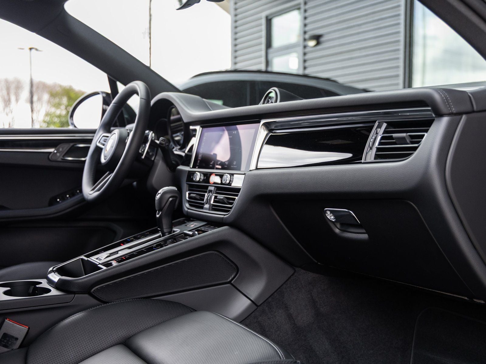 The Macan stands as a beacon of design and versatility, its Black exterior not just a color, but a bold statement of timeless elegance and athletic presence. Adorned with striking 20 Macan S Wheels in Vesuvius Grey and LED Headlights including Porsche Dynamic Light System Plus (PDLS+), it presents a confident and commanding stance. The Panoramic Roof System enhances both style and openness, while Under Door Puddle Light Projectors add an exclusive touch of refinement to every arrival.