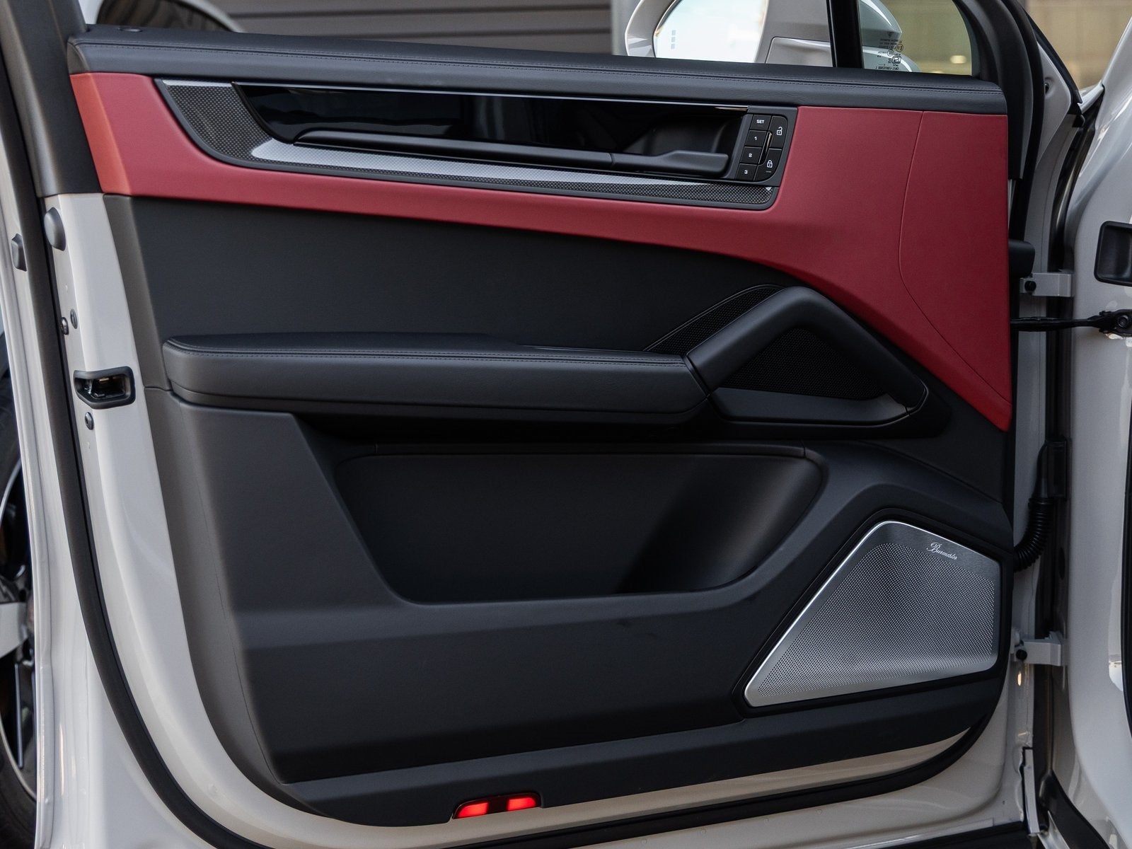 Step inside and the Leather Interior in Black/Bordeaux Red greets you with sporty elegance. Adaptive Sport Seats Plus (18-way) with Comfort Memory, Interior Trim in Carbon Fiber, and the Porsche Crest embossed on all headrests deliver an interior tailored for both comfort and prestige. Added luxuries include Heated Rear Seats, Ventilated Front Seats, a 4-Zone Climate Control system, and Thermally & Noise Insulated Glass, ensuring an unmatched driving atmosphere.