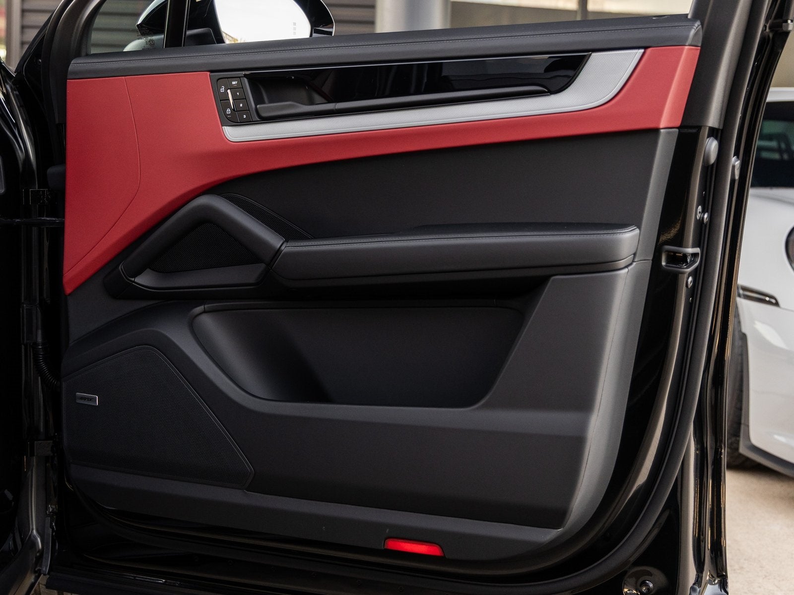 Step inside and the Leather Interior in Black/Bordeaux Red welcomes you into a cabin that is both bold and luxurious. Adaptive Sport Seats Plus (18-way) with Comfort Memory deliver optimal support and comfort, while ventilated front seats and heated rear seats ensure passenger comfort in all seasons. Additional interior refinements include the Heated GT Sport Steering Wheel in Leather and Porsche Crest on Headrests (Front and Rear), underscoring the vehicle's bespoke craftsmanship.