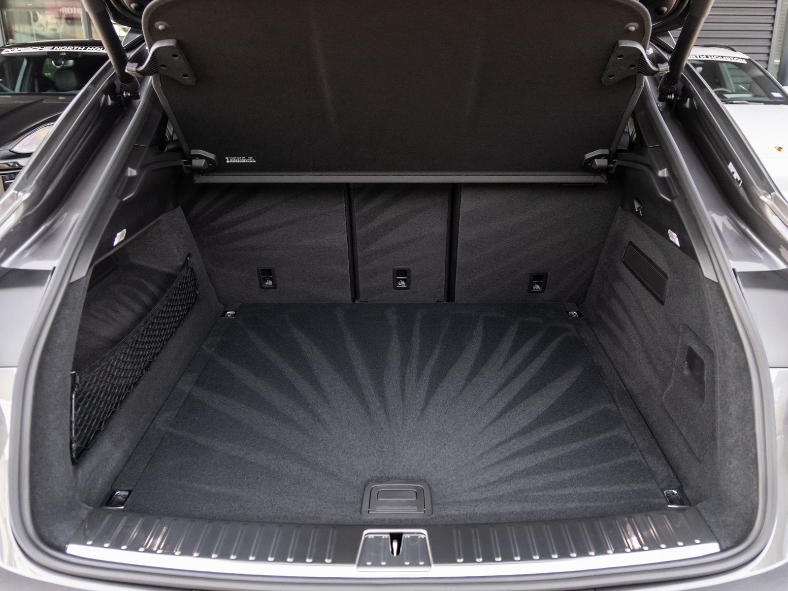 The Cayenne S Coupe commands attention with its Quartzite Grey Metallic finish, accented by 21 RS Spyder Design Wheels in Satin Black and HD-Matrix Design LED Headlights in Black. The Extended Exterior Package in High Gloss Black and Sport Exhaust System with Tailpipes in Dark Bronze elevate its dynamic presence, while Exclusive Design Taillights and Under Door Puddle Light Projectors add a bespoke touch.