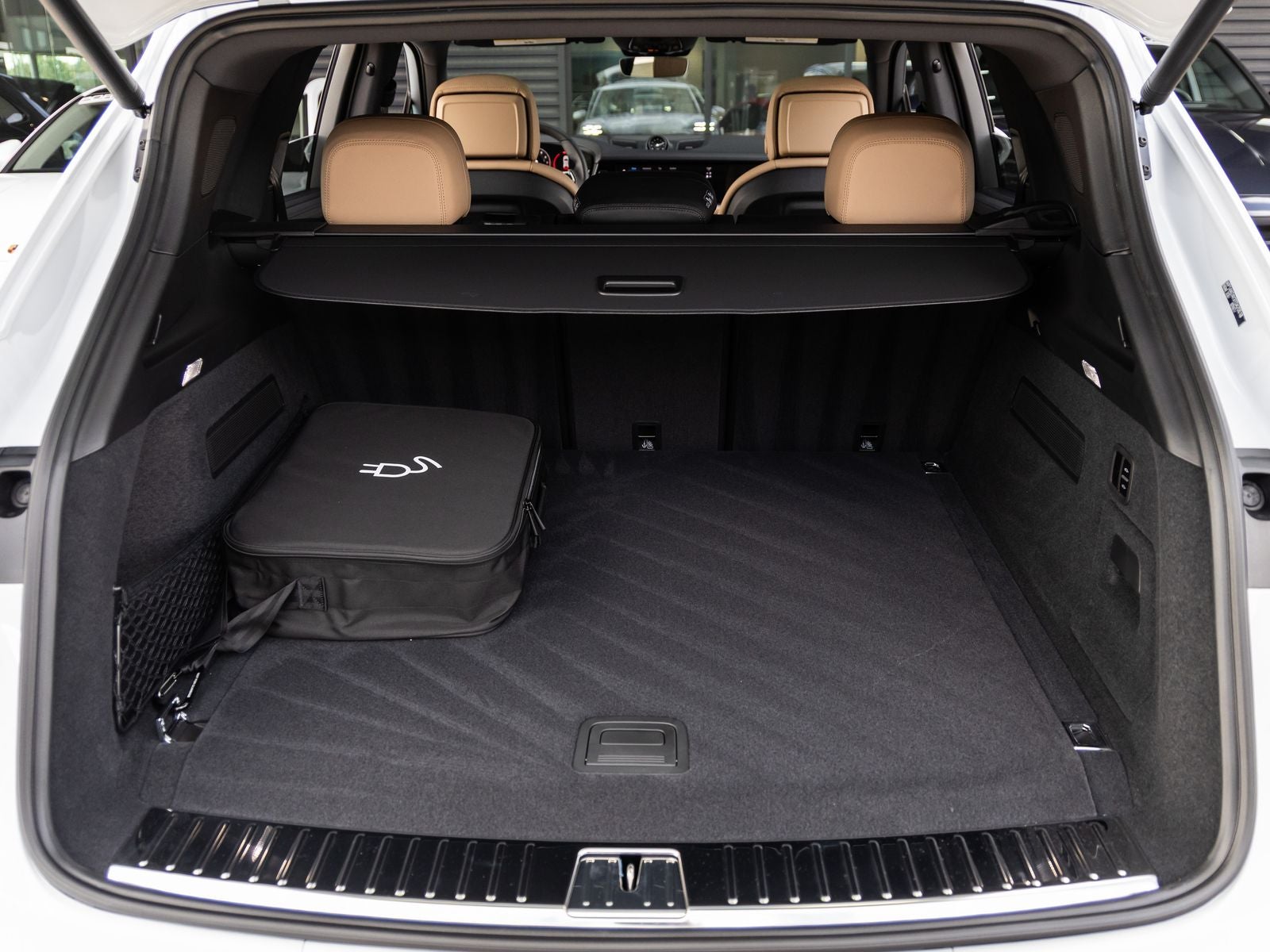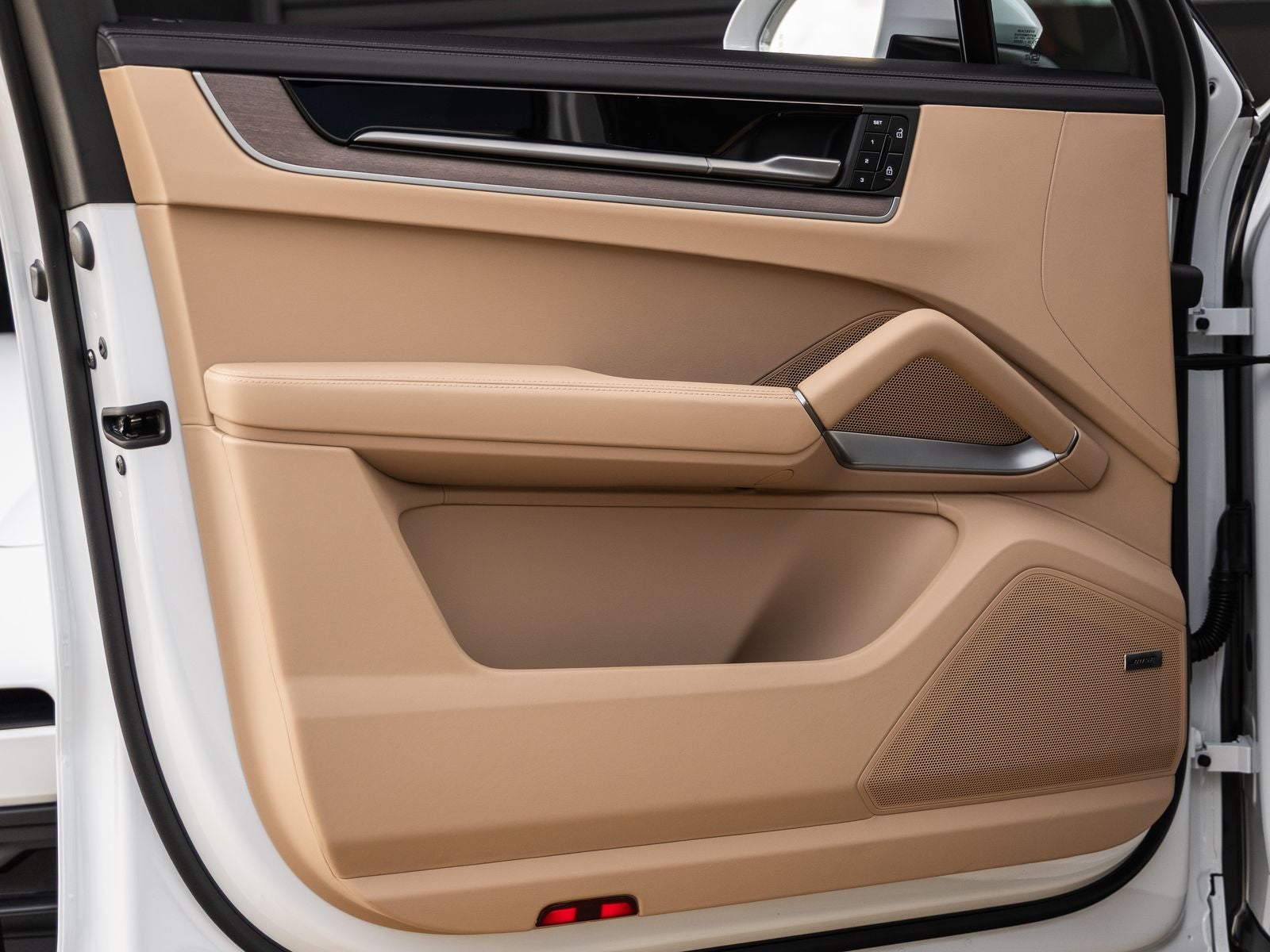 The Cayenne S E-Hybrid stands as a beacon of design and electrified performance, its Carrara White Metallic exterior not just a color, but a statement of refined power and efficiency. Adorned with 22-inch 911 Turbo Design Wheels and HD-Matrix Design LED Headlights, it presents a bold and commanding presence. The SportDesign Front Fascia, Exclusive Design Taillights, and High Gloss Black accents including Window Trim and Model Designation enhance its dynamic and modern appeal, while Roof Rails in Black Aluminum Finish add versatility.