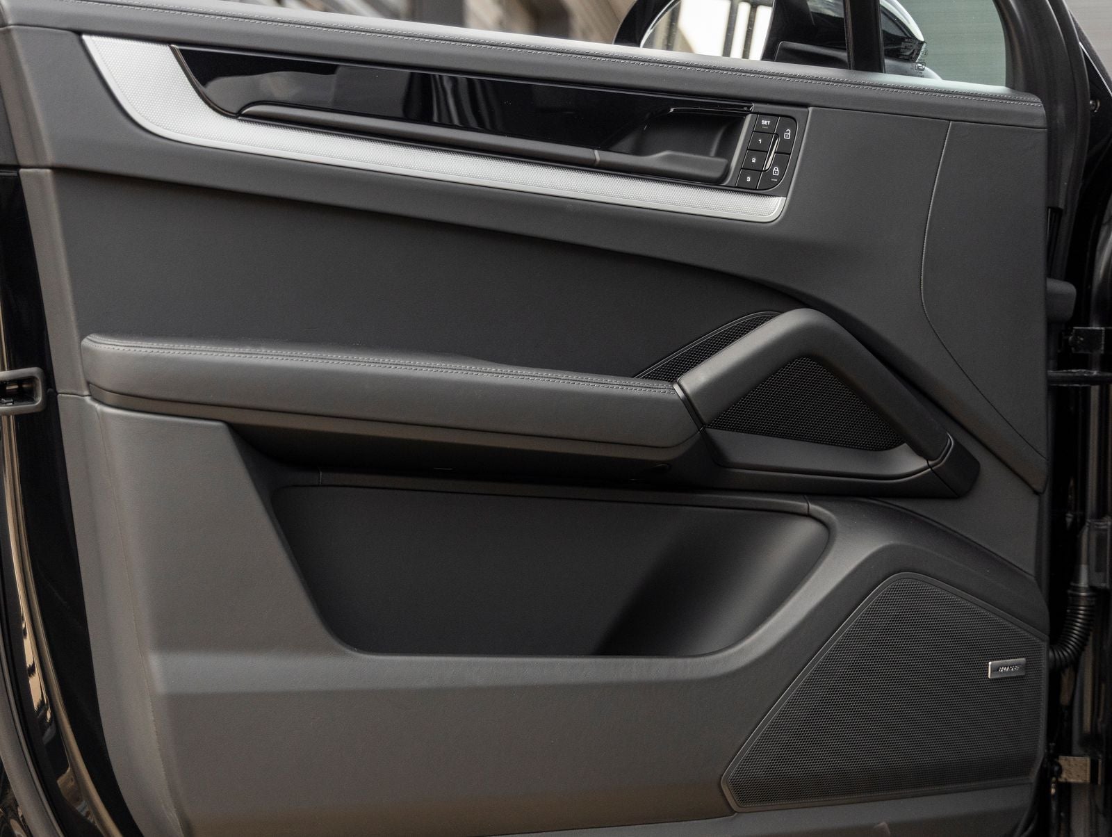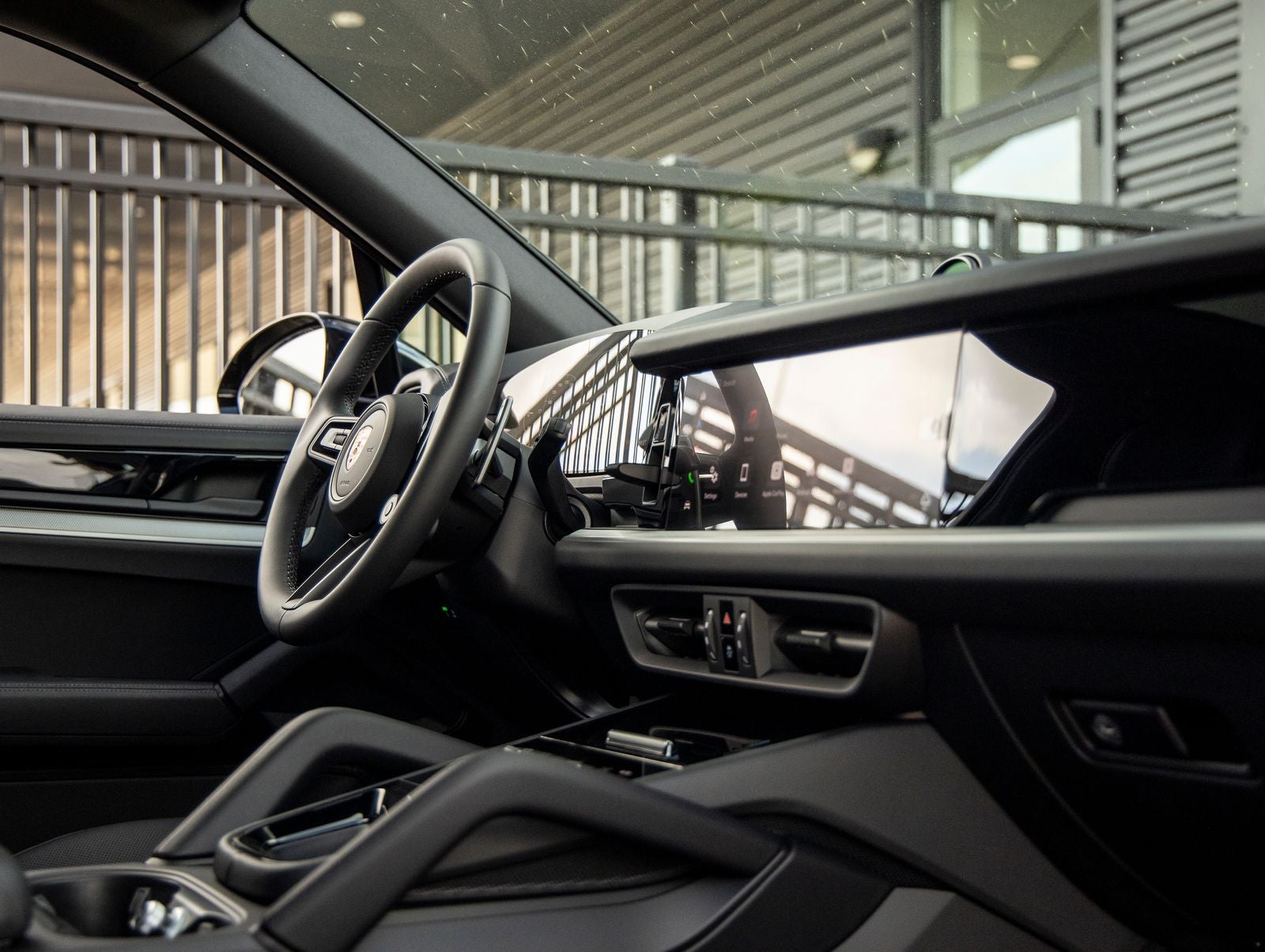 The Cayenne S E-Hybrid stands as a bold statement of modern Porsche design, its Chromite Black Metallic exterior delivering a sleek and commanding presence. Equipped with 22-inch 911 Turbo Design Wheels, HD-Matrix Design LED Headlights, and Sport Tailpipes in Dark Bronze, it embodies athletic sophistication. The Panoramic Roof System, Roof Rails in Black Aluminum Finish, and High Gloss Black Window Trim further enhance the vehicles premium appearance while adding everyday versatility.