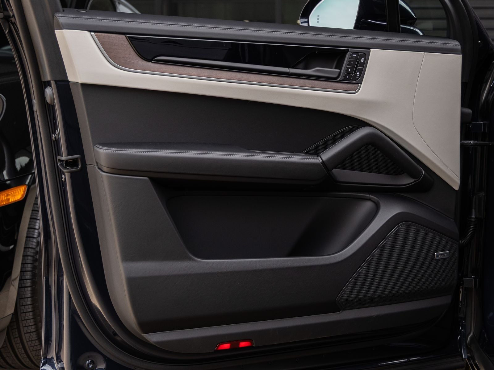 Step inside and the Leather Interior in Black/Chalk welcomes you with a harmonious blend of luxury and innovation. The 14-way Power Seats with Comfort Memory, Ventilated Front Seats, and Heated Rear Seats ensure supreme comfort for all passengers. Interior Trim in Eucalyptus, Porsche Crests on the Headrests, and Illuminated Door-Sill Guards highlight the craftsmanship, while the BOSE Surround Sound System and Head-Up Display provide a premium and technology-rich driving environment.