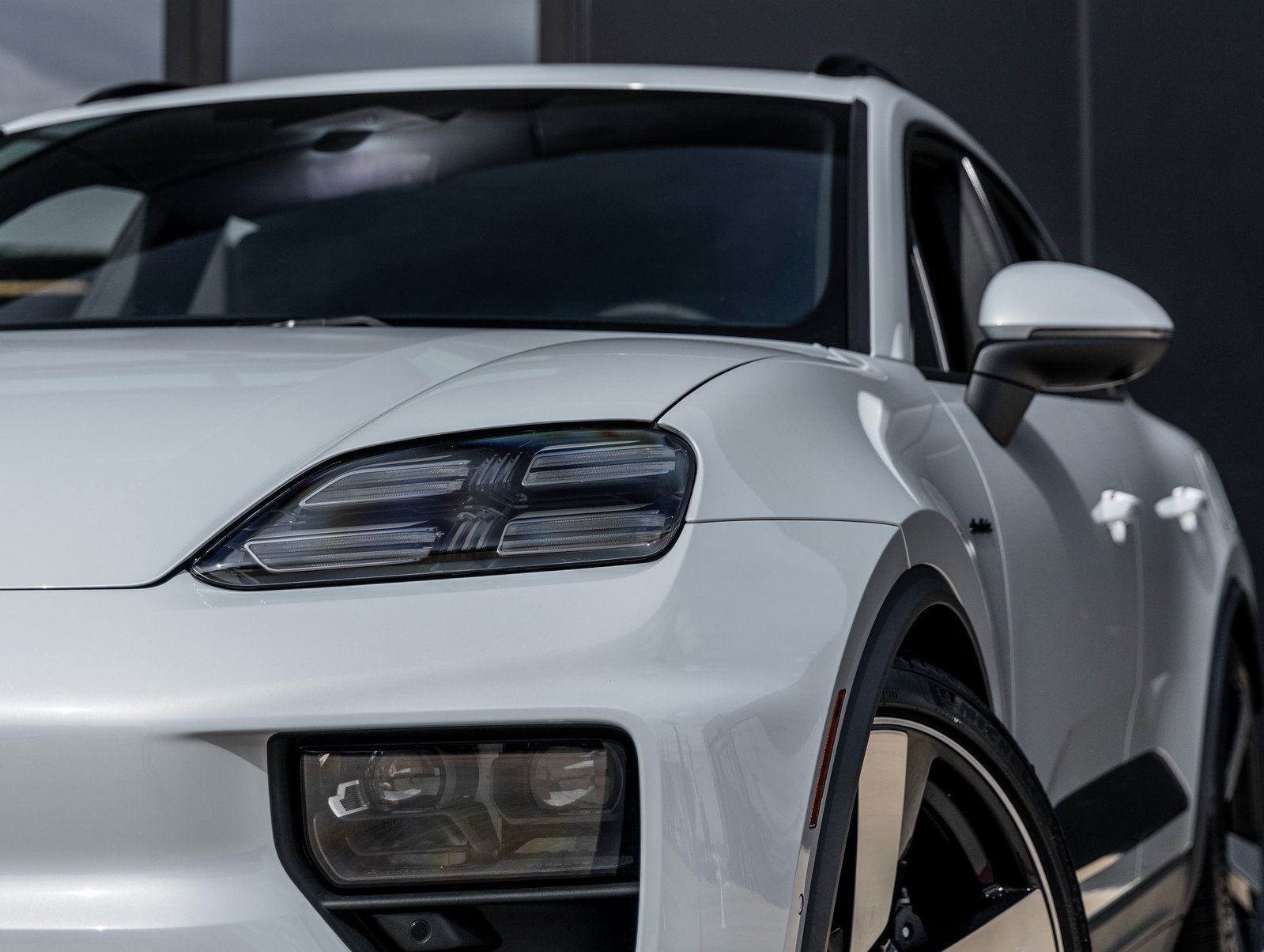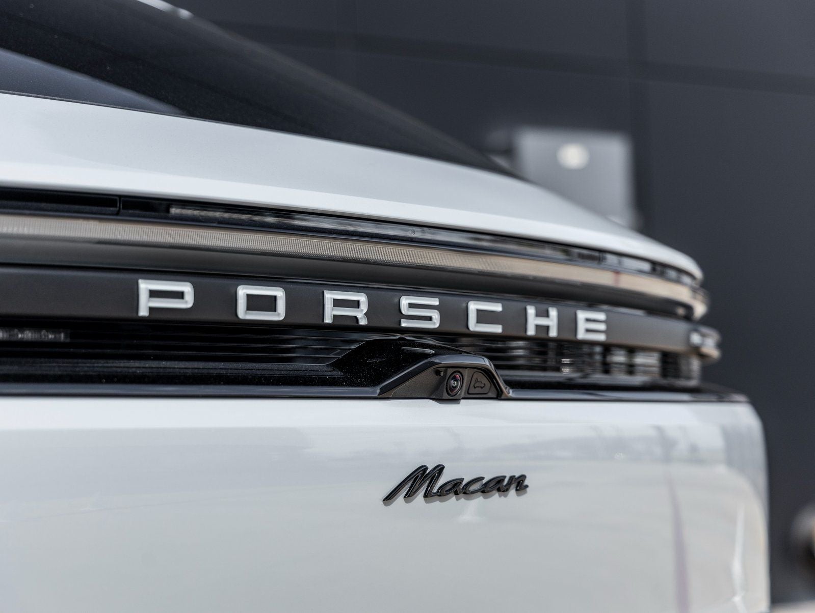The Macan Electric stands as a bold expression of Porsches electrified future. Its Ice Grey Metallic exterior radiates modern elegance, complemented by striking 22 Macan Sport Wheels and LED-Matrix Design Headlights. High Gloss Black accents, including the Window Trim, Side Blades, and Model Designation with electric logo, enhance its athletic presence. The Premium Package and Sport Chrono Package further elevate both luxury and dynamic capability, while Porsche Electric Sport Sound adds an engaging emotional edge to every drive.