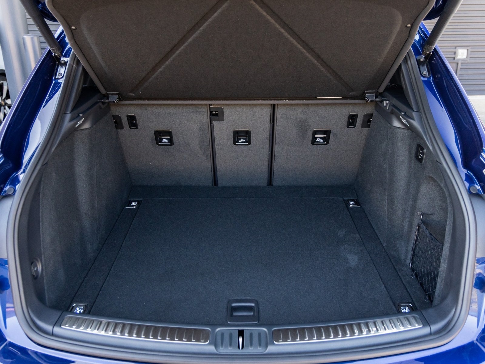 The Macan S stands as a beacon of design and performance, its Gentian Blue Metallic exterior not just a color, but a badge of honor that reflects Porsche's illustrious styling heritage. Adorned with 21 RS Spyder Design Wheels and LED Headlights including Porsche Dynamic Light System Plus (PDLS+), it presents a commanding stance. The Exterior Package in Exterior Color and Side Blades in Exterior Color enhance its athletic character and visual harmony.