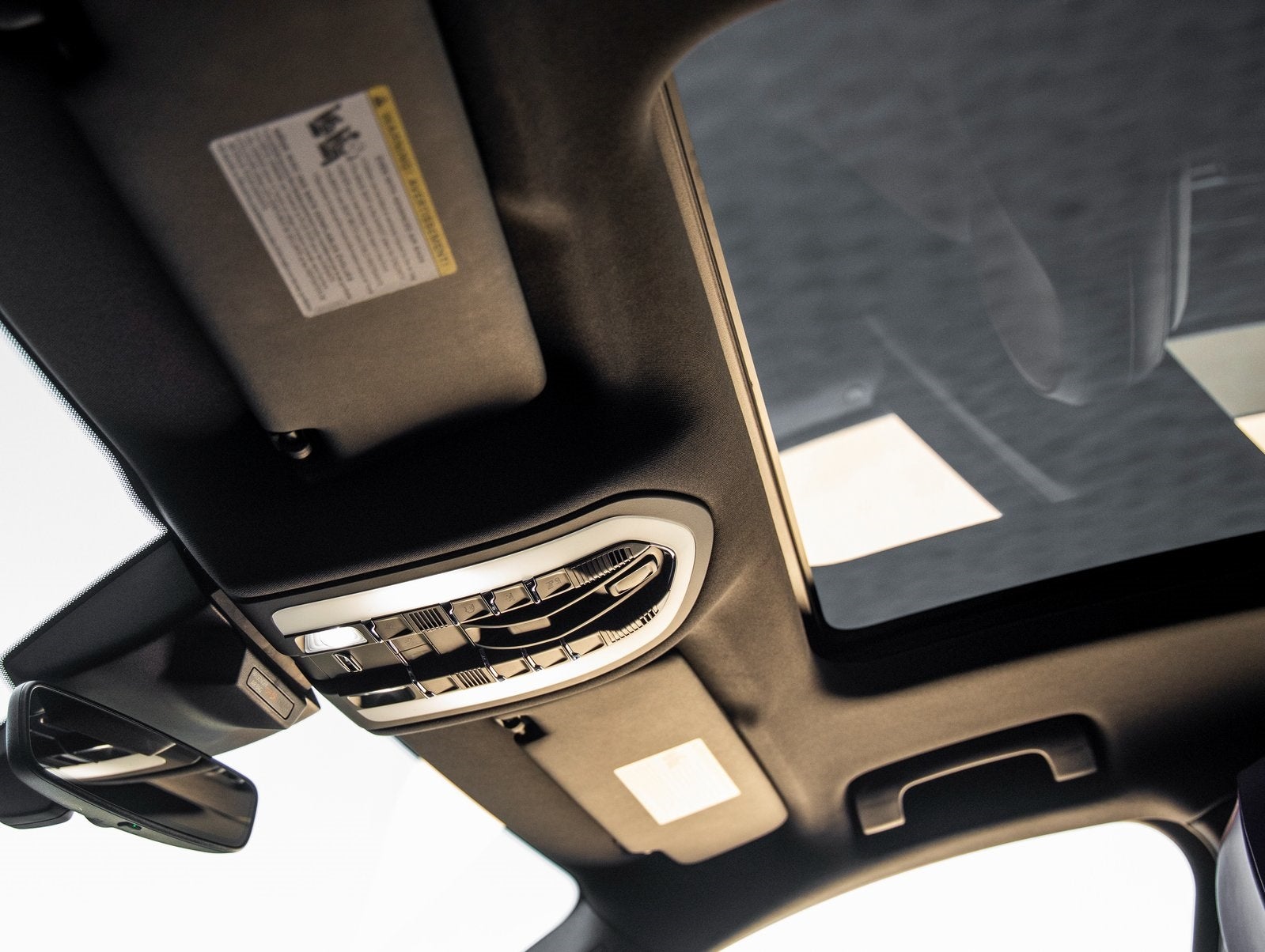 Step inside and the Leather Package in Black/Bordeaux Red interior greets you, a dramatic and elegant combination that evokes both luxury and individuality. The 14-way Power Seats with Memory Package, Heated Rear Seats, and Ventilated Front Seats ensure bespoke comfort in every climate. A Panoramic Roof System brings natural light and air into the cabin, while the Premium Package Plus enhances the experience with seamless convenience and technology, including Lane Change Assist (LCA) and a comprehensive Surround View camera system.