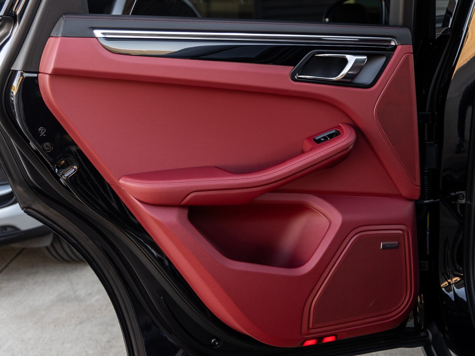 Inside, the Black/Bordeaux Red Leather Interior surrounds you in luxury. Enjoy comfort features like 14-way Power Seats with Memory, Ventilated Front Seats, Heated Rear Seats, and a Heated Steering Wheel. A Panoramic Roof System brings in natural light, while the BOSE Surround Sound System delivers premium audio. Details like the Porsche Crest on Front Headrests elevate the experience.