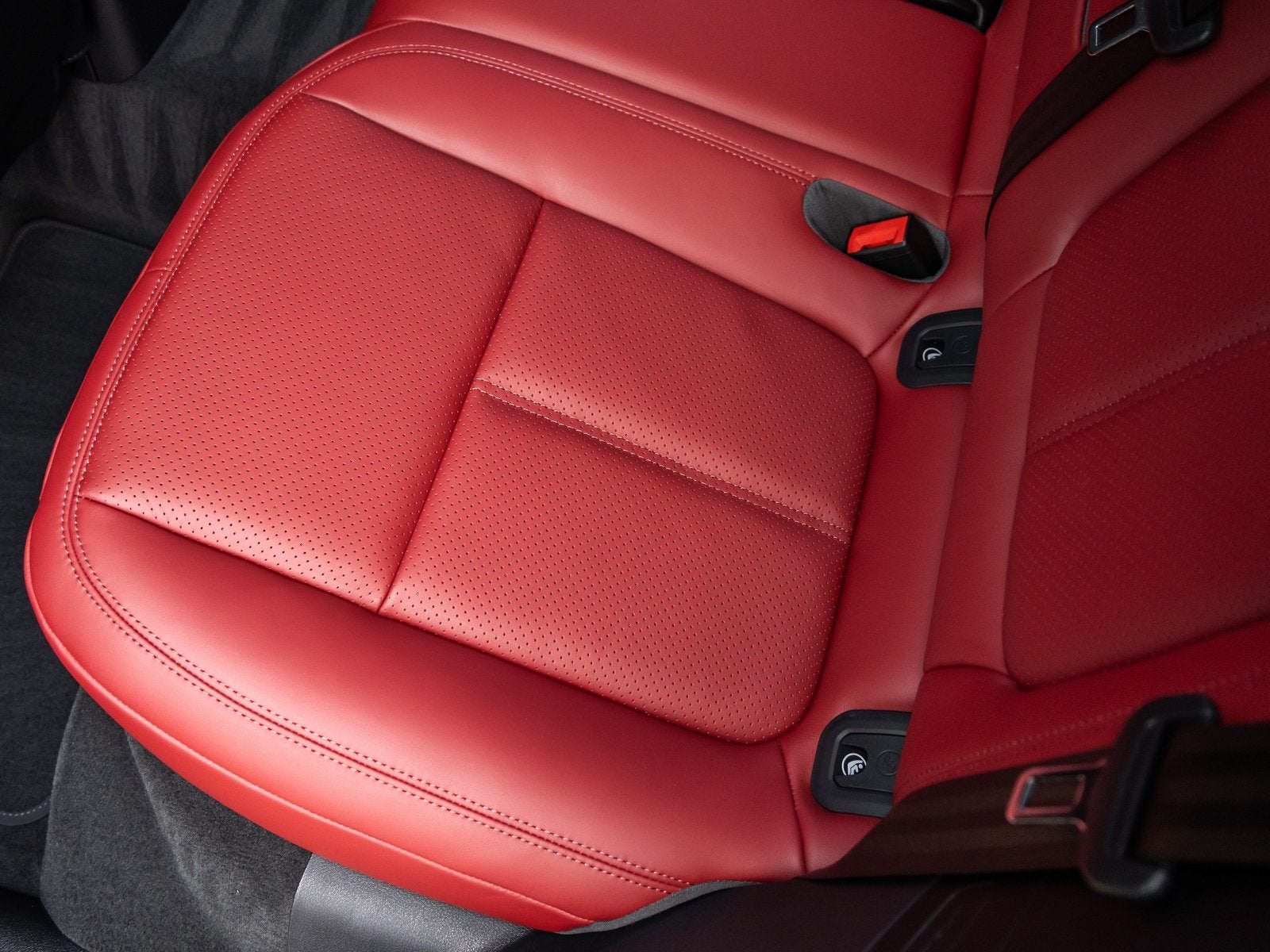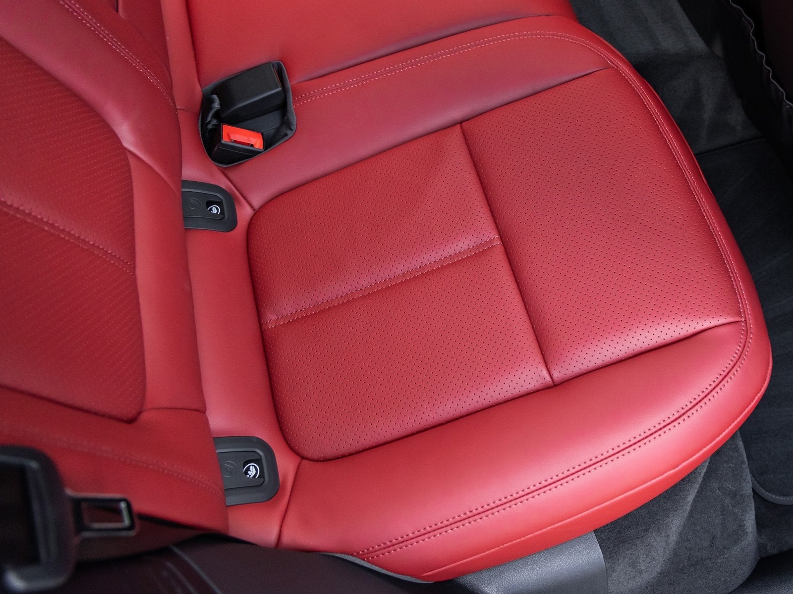 Step inside and the Leather Package in Black/Bordeaux Red greets you with a dynamic fusion of comfort and contrast. The cabin is elevated by 14-way Power Seats with Memory, Ventilated Front Seats, Heated Rear Seats, and the stylish Porsche Crest on Headrests (Front and Rear). A Heated GT Sport Steering Wheel in Leather adds a performance-focused touch, while the Electric Steering Column ensures personalized driving ergonomics. The Panoramic Roof System floods the interior with natural light, enhancing every journey.