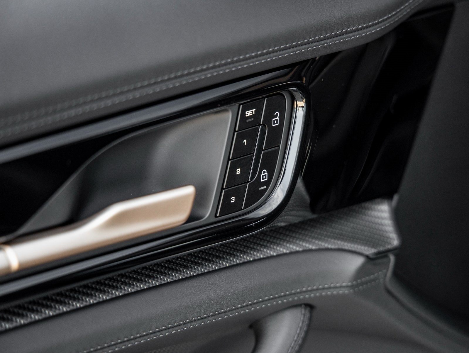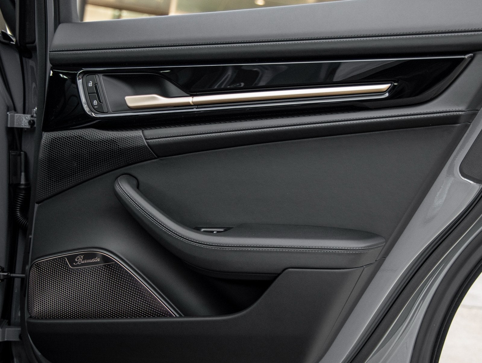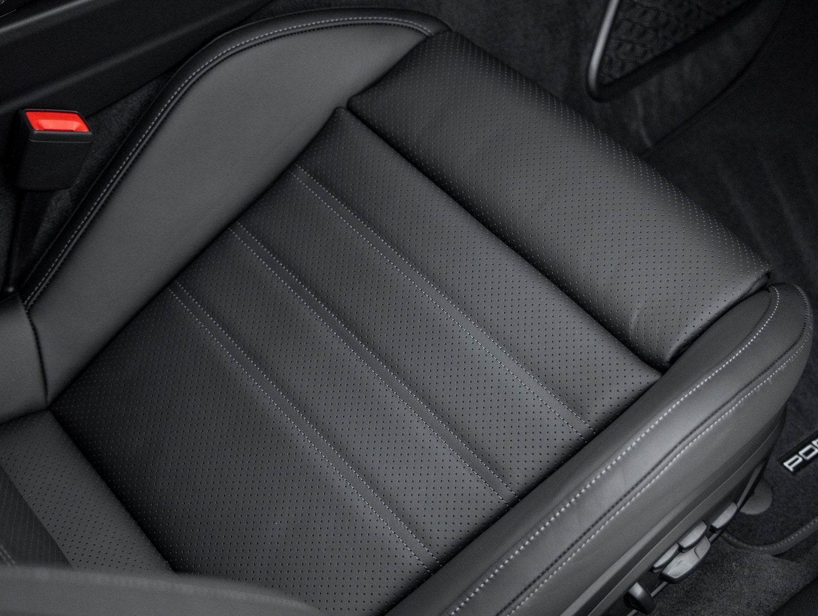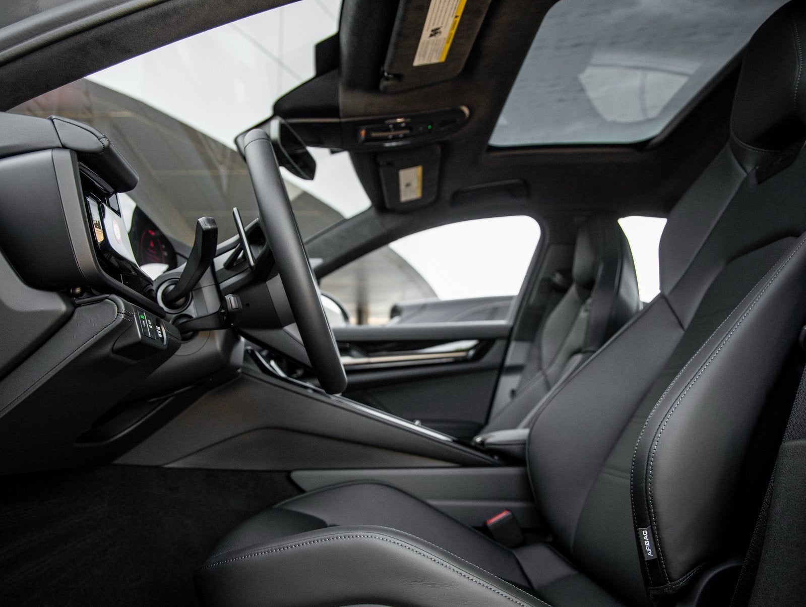 Inside, a Black Leather Interior offers an elevated experience. Interior Trim in Neodyme Matte Carbon Fiber and Interior Accents in Neodyme bring contrast and sophistication, while the Center Console Armrest with Porsche Crest adds a tailored touch. Premium technology like the Passenger Display and Burmester 3D High-End Surround Sound-System elevate every drive.