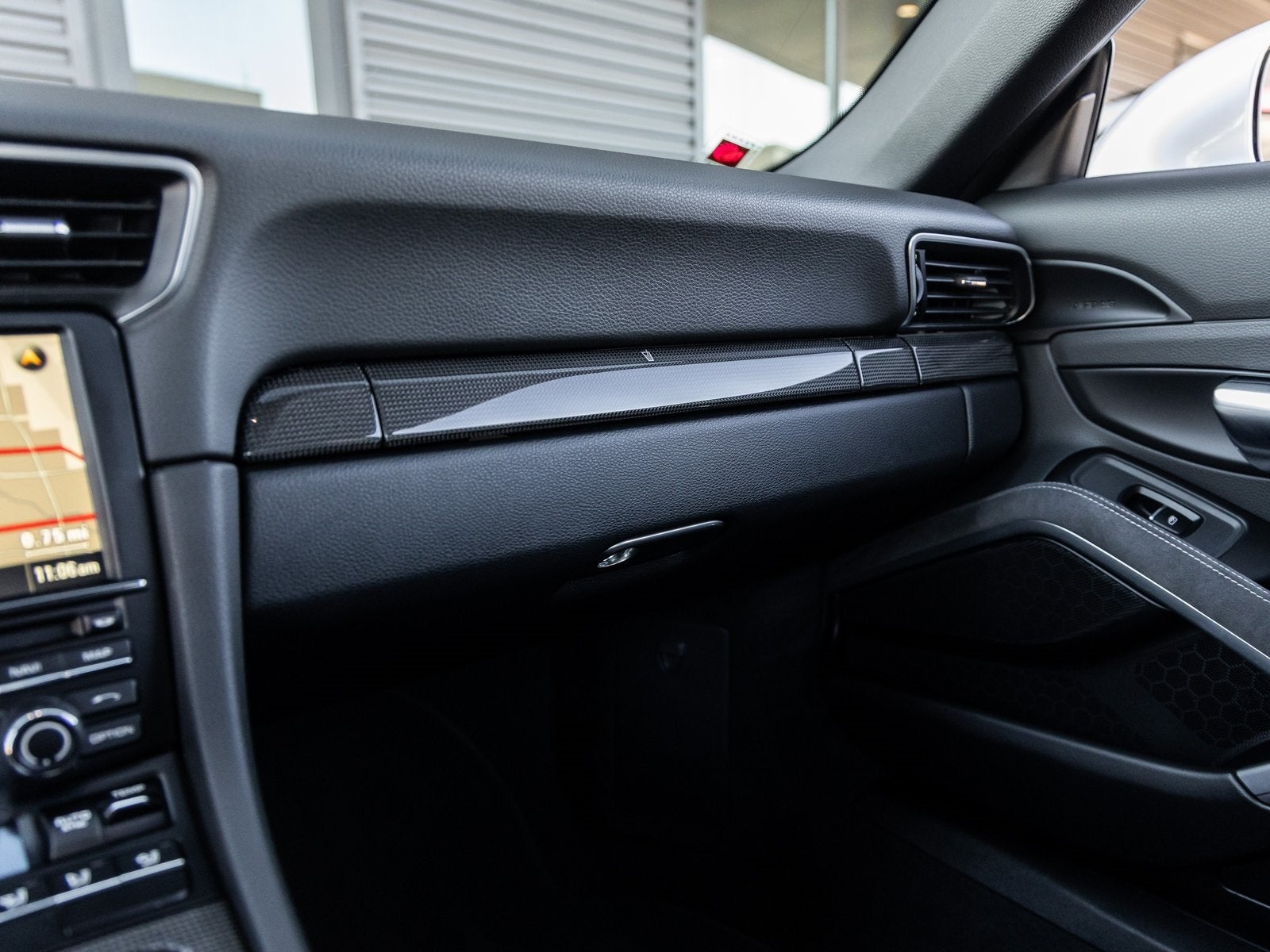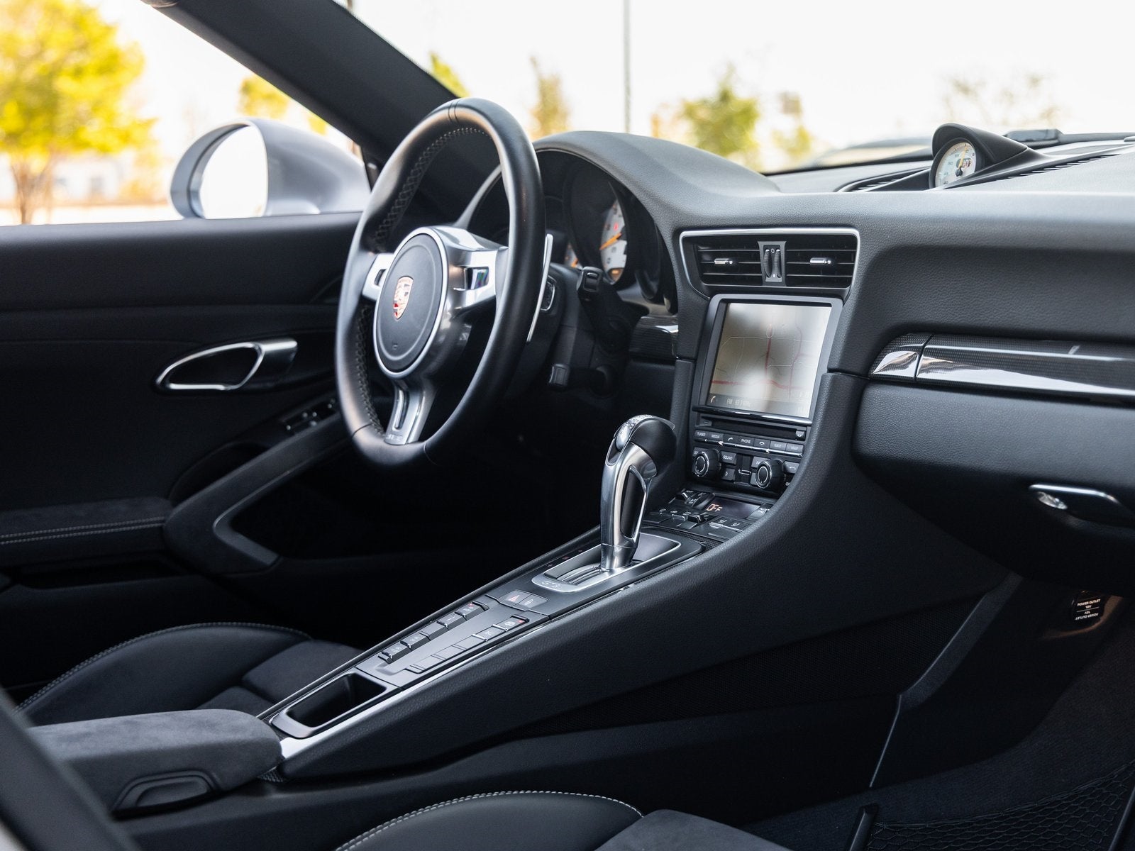 Step inside and the Black Leather/Alcantara interior greets you with both luxury and race-ready focus. The cabin is enhanced by the Carbon Fiber Interior Package, Center Console Trim in Carbon Fiber, and Instrument Dials in White, all of which reflect meticulous Porsche craftsmanship. Adaptive Sport Seats Plus (18-way) with Memory Package offer tailored comfort, while the SportDesign Steering Wheel and Sport Chrono Clock Dial in White underscore its dynamic character.