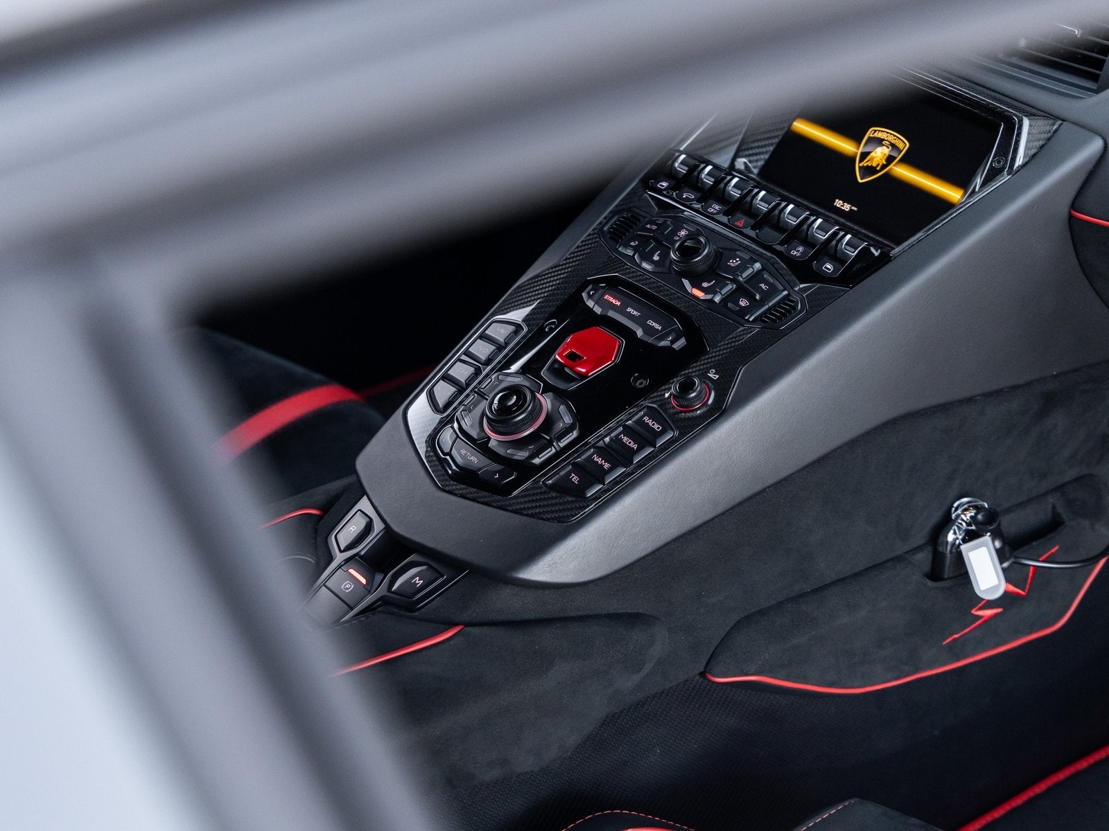 Fire Extinguisher: A track-minded feature that reinforces the Aventador SV Roadsters serious performance intent.