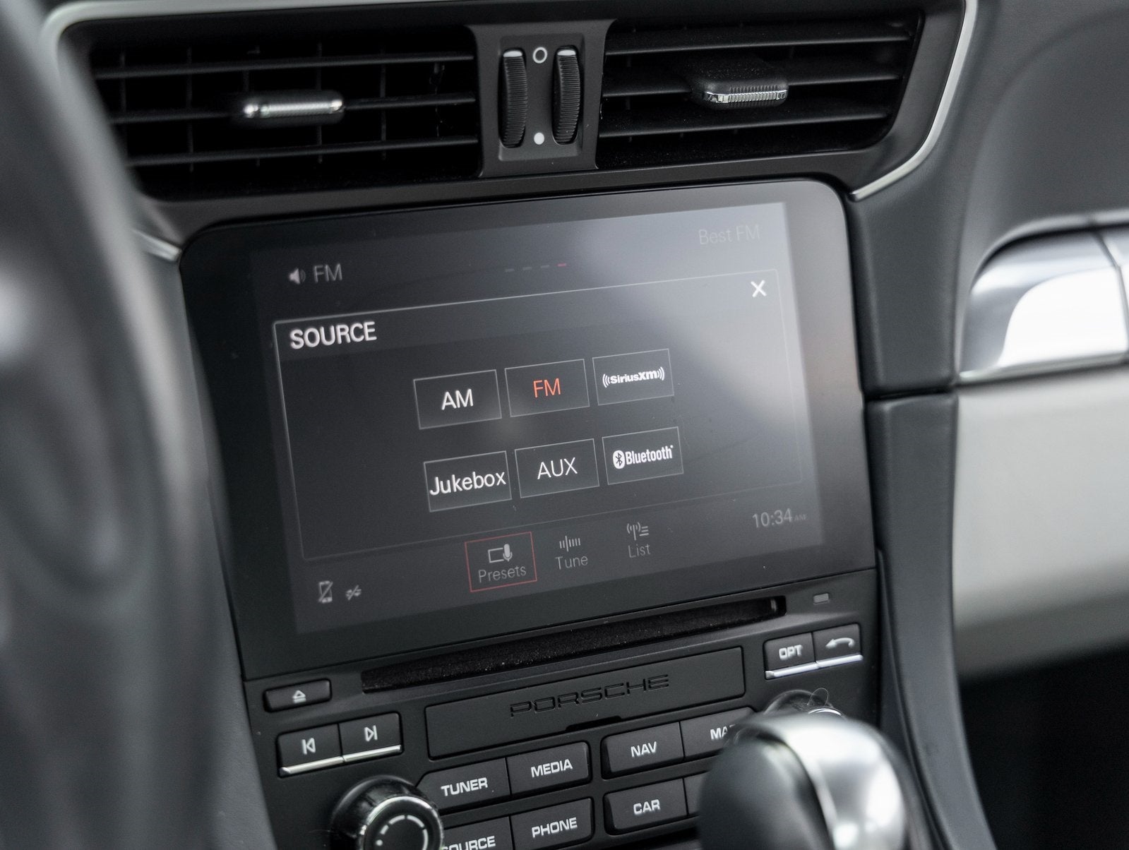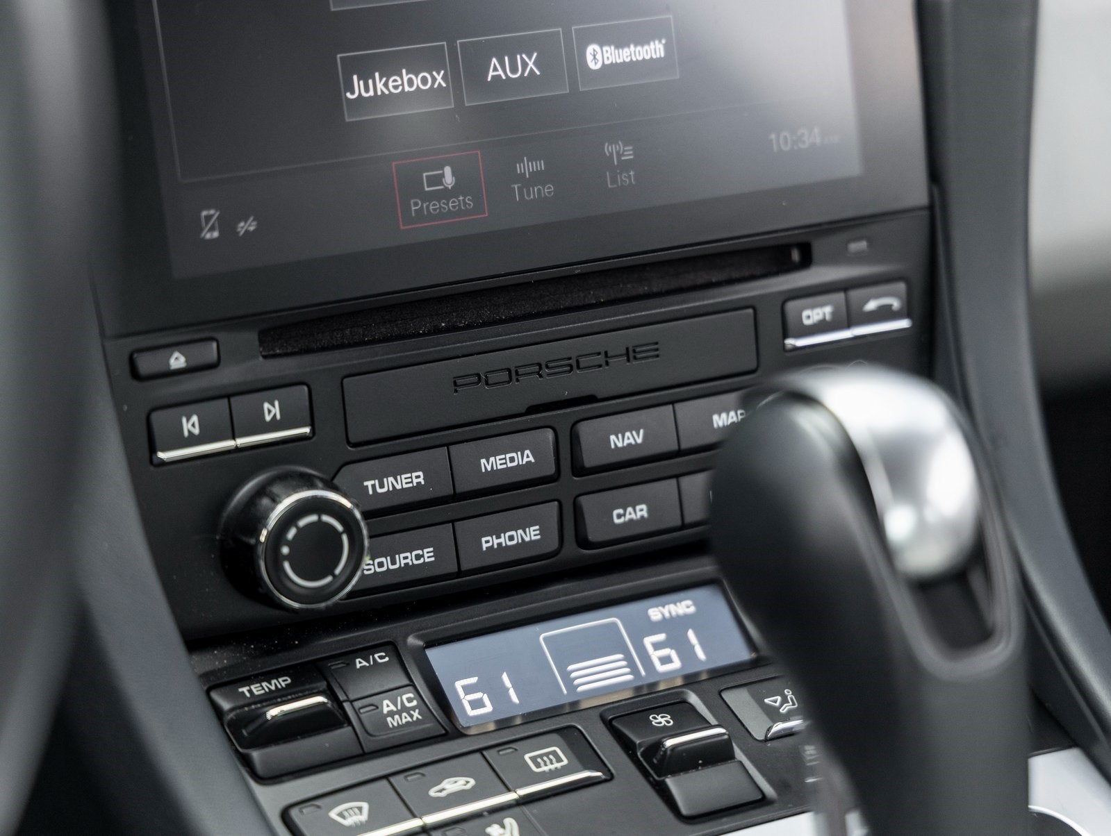 - Radio: Porsche Communication Management (PCM) -inc: CD/DVD drive, 11 GB internal jukebox storage, 2 USB slots, 2 SD card slots, Bluetooth® hands-free mobile phone connection using Hands Free Profile (HFP), Porsche Car Connect (including Carfinder, remote vehicle status, remote services, and Porsche Vehicle Tracking System (PVTS)), Connect Plus module featuring online navigation, mobile phone preparation, audio interface, Apple CarPlay, wireless internet access, SiriusXM satellite radio w/3-month trial, HD Radio receiver, Sound Package Plus sound system featuring 8 Speakers, 150 Watt output and universal audio interface (AUX-IN, USB, iPod)
