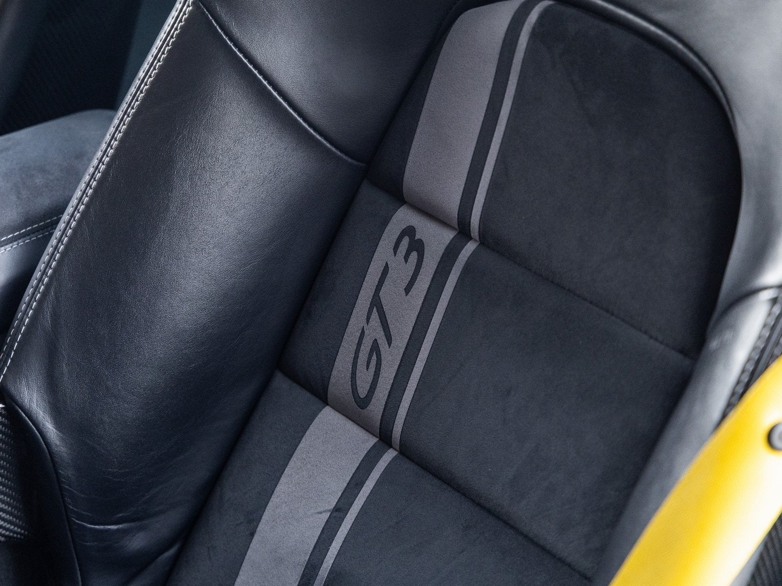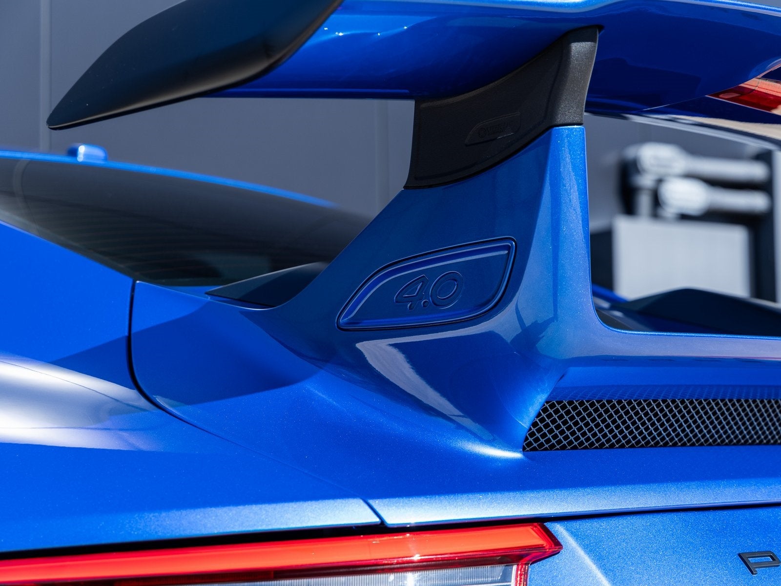 Step inside and the Leather/Alcantara Interior in Black with Platinum Grey Stitching greets you with a cockpit that blends motorsport focus with everyday luxury. The Full Bucket Seats offer unrivaled support, while the Steering Wheel with 12 O'Clock Marker in Red and Seat Belts in Racing Yellow accent the interior with vivid sport-inspired elements. Additional touches such as the Interior Trim in Carbon Fiber and Fire Extinguisher affirm its racing DNA.