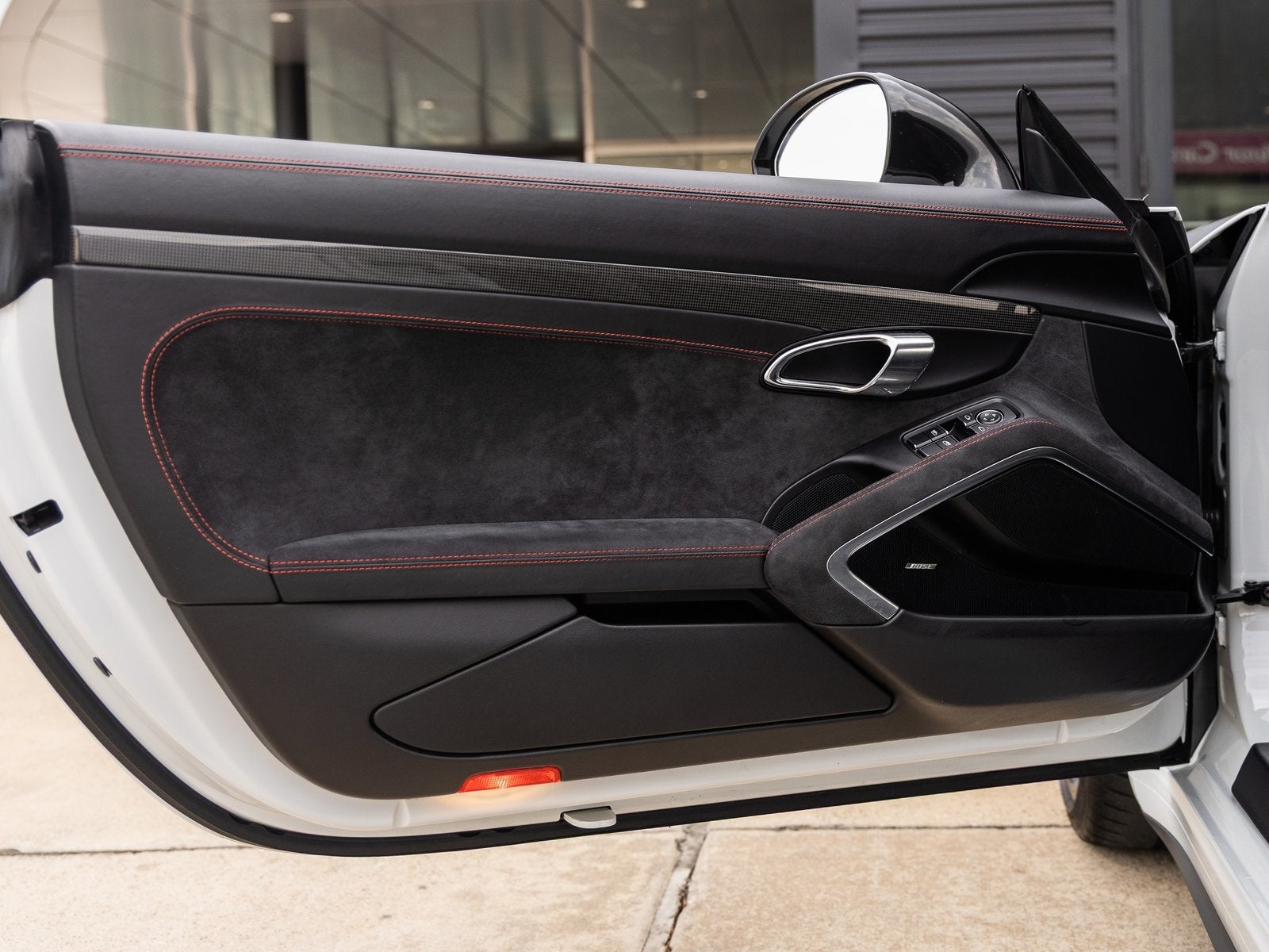 Step inside and the Leather/Alcantara interior in Black with Red Stitching immediately surrounds you in a race-inspired yet refined environment. Highlights include the Steering Wheel with a 12 OClock Marker in Red, Carbon Fiber Interior Trim, Sport Chrono Stopwatch Dial in Guards Red, and the Light Design Package, all working together to create a cockpit focused on the driver. Comfort and convenience are enhanced with Seat Heating, BOSE Surround Sound System, Automatically Dimming Mirrors with Integrated Rain Sensor, and thoughtful details such as the Smoking Package, Floor Mats, and Luggage Net in the passenger footwell.
