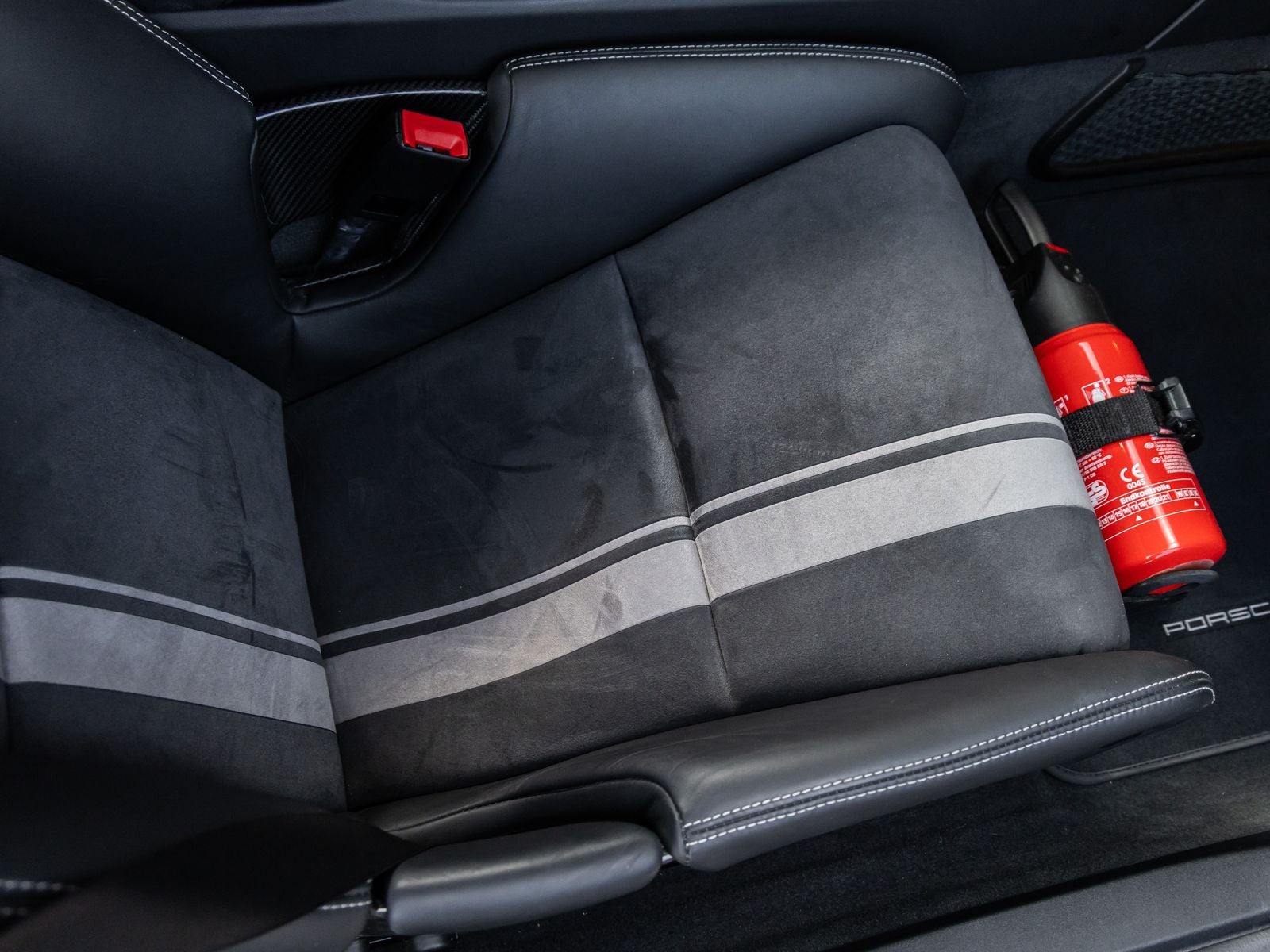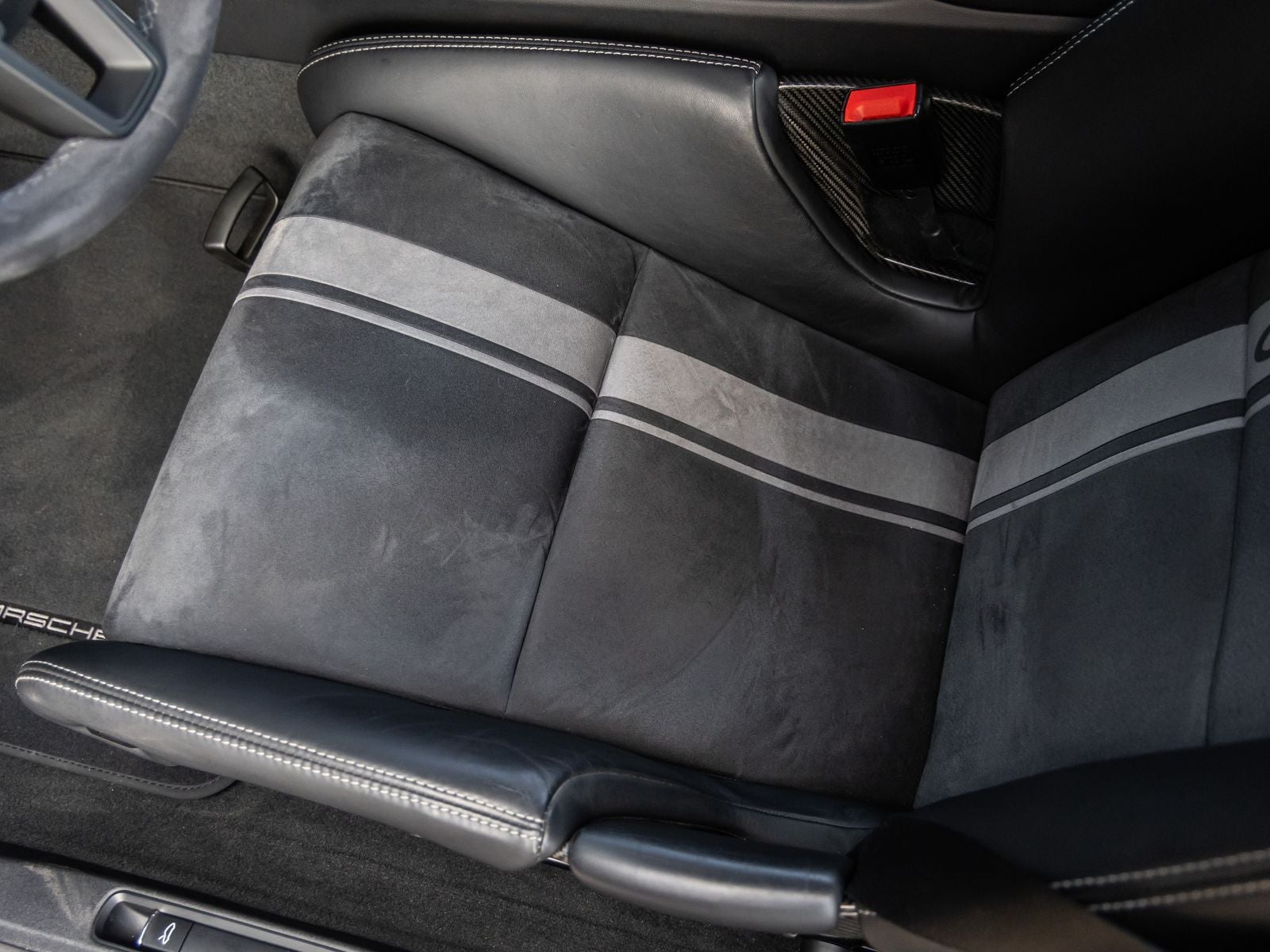 Step inside and the Black Leather/Alcantara interior with Platinum Grey stitching greets you, exuding an air of race-inspired luxury that only Porsche can deliver. The Full Bucket Seats provide exceptional support for spirited driving, while Carbon Fiber Interior Trim reinforces its lightweight performance ethos. White instrument dials and a Sport Chrono stopwatch dial add a distinctive motorsport touch, complemented by a BOSE Surround Sound System for premium audio.