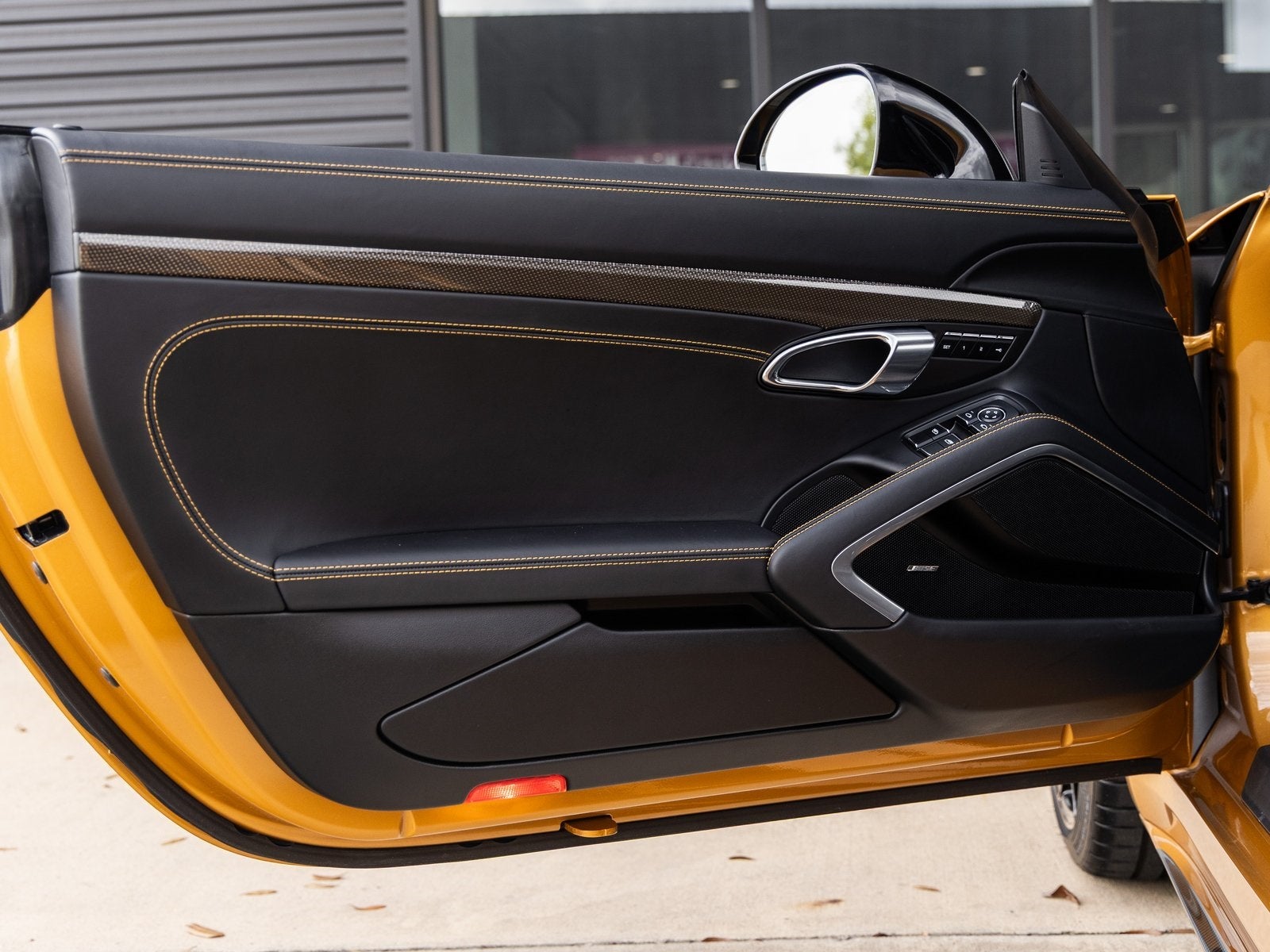 Step inside and the Leather Interior in Black with Contrasts in Golden Yellow greets you with bespoke craftsmanship from Porsche Exclusive Manufaktur. The Exclusive Manufaktur Package in Black/Golden Yellow enhances the cabin with striking contrast stitching and coordinated accents throughout. Carbon Fiber Floor Mats with Leather Edging and Fuse Box Covers in Leather further reflect the meticulous attention to detail, while Voice Control adds intuitive modern convenience to the driver-focused cockpit.
