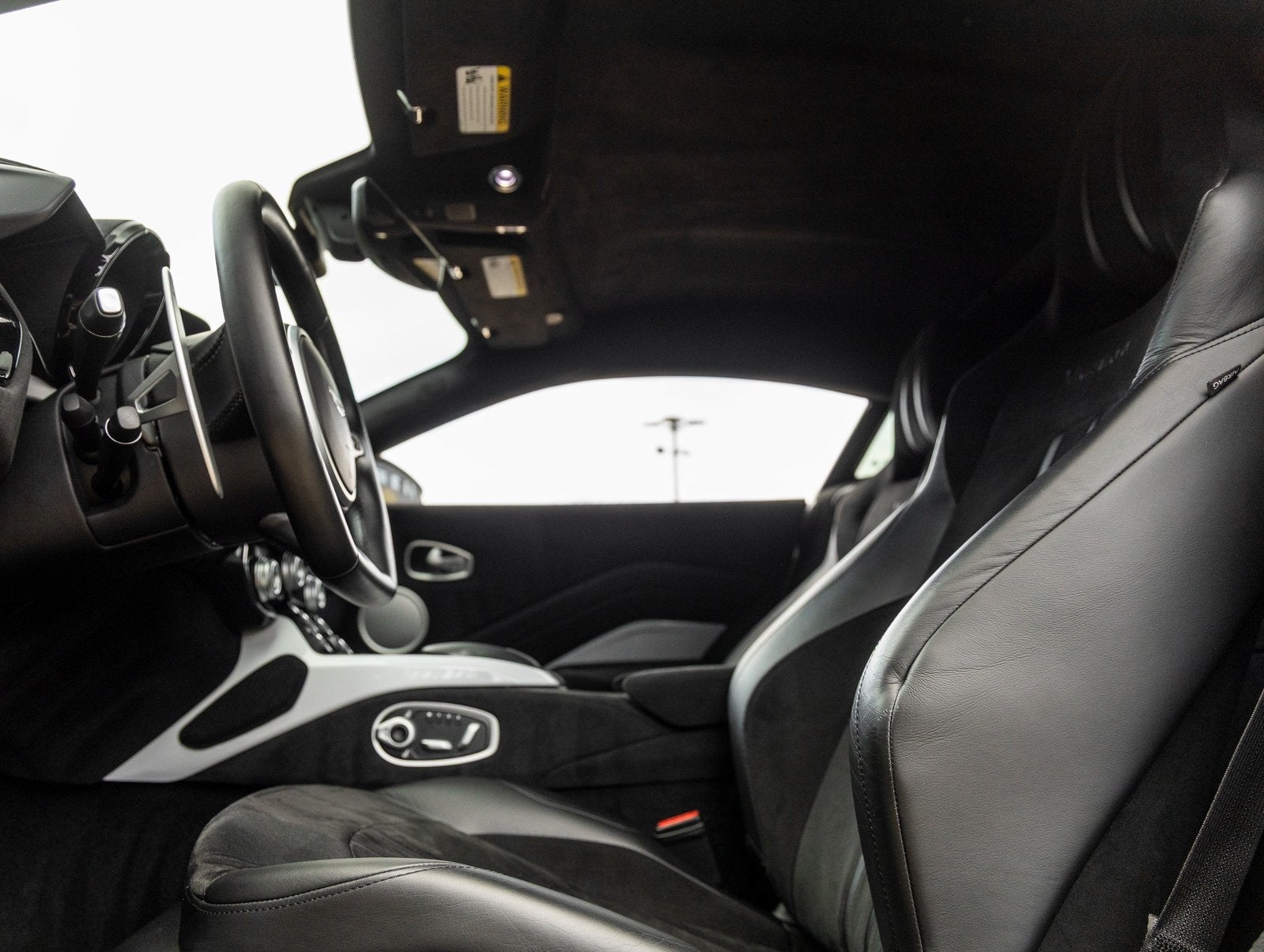 Premium Black Leather Interior: Meticulously crafted surfaces that reflect Aston Martins commitment to luxury.
