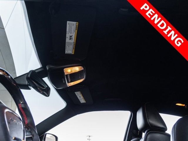 Step inside and the Black Alcantara / Laguna interior surrounds you with comfort and purpose-built luxury. Heated and ventilated front seats, heated second-row seats, and a premium-stitched dash panel elevate daily driving, while SRT Hellcat interior badging and dark engine-turned aluminum accents reinforce its performance-driven character. The Alcantara-wrapped steering wheel, suede door trim panels, and memory settings for the driver seat and mirrors ensure both control and convenience at every turn.