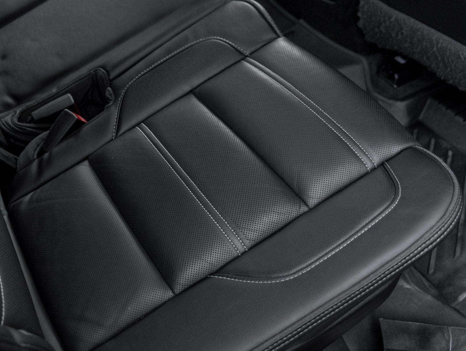 Step inside and you're greeted by a refined Jet Black leather interior with real wood accents, creating a space thats both luxurious and functional. The cabin is outfitted with heated and ventilated front seats, a heated second-row, a power-folding third row, and a heated leather-wrapped steering wheel. A Head-Up Display, wireless charging, and a premium Bose Centerpoint Surround Sound System enhance comfort and connectivity for every occupant.