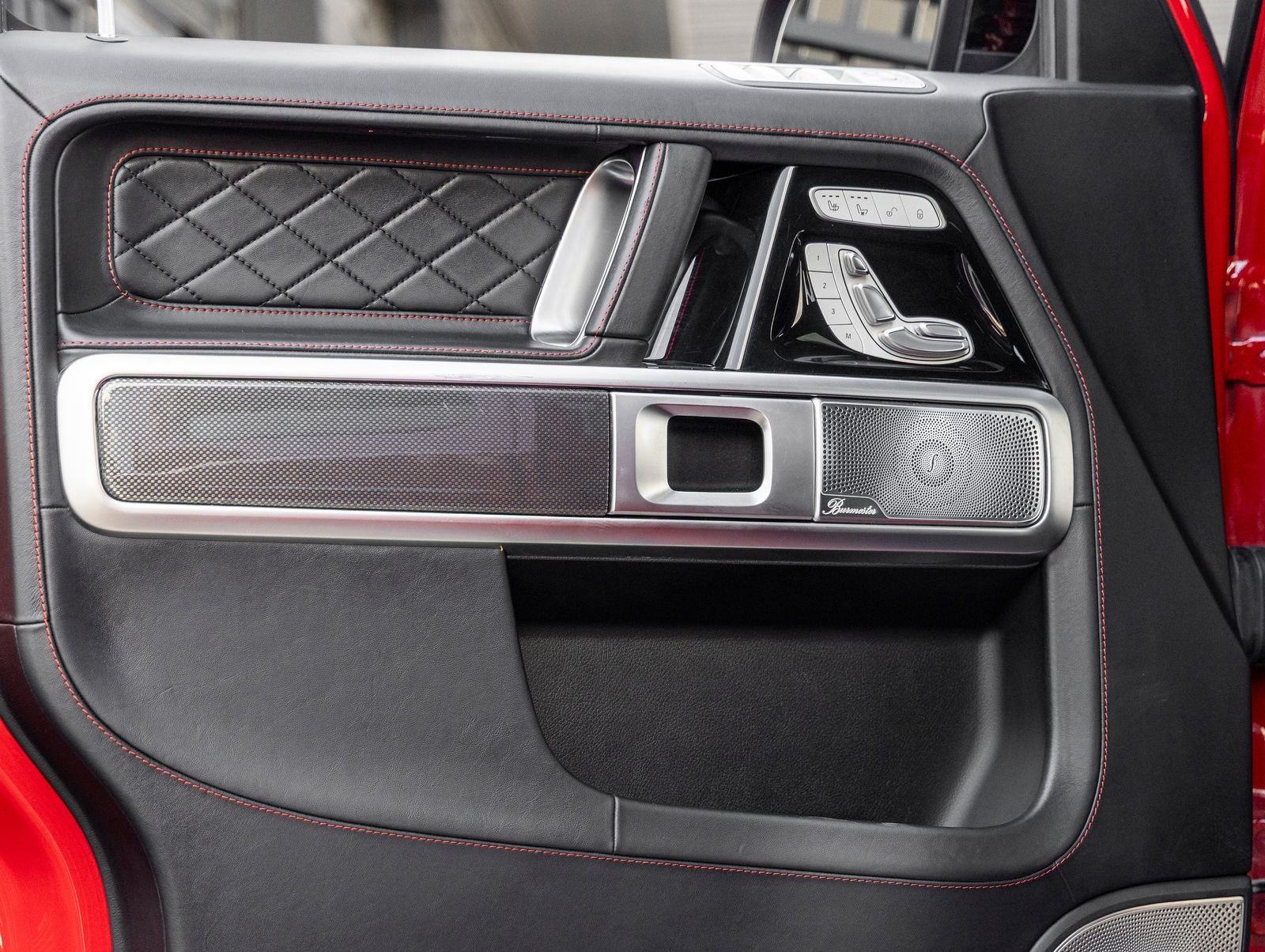 The G 63 AMG stands as a beacon of design and performance, its G manufaktur Jupiter Red exterior not just a color, but a badge of honor that reflects Mercedes-Benz's iconic heritage. Adorned with signature AMG styling, bold body lines, and LED lighting, it presents an unmistakably commanding stance. Distinctive design elements and performance-focused enhancements further amplify its aggressive yet refined character.