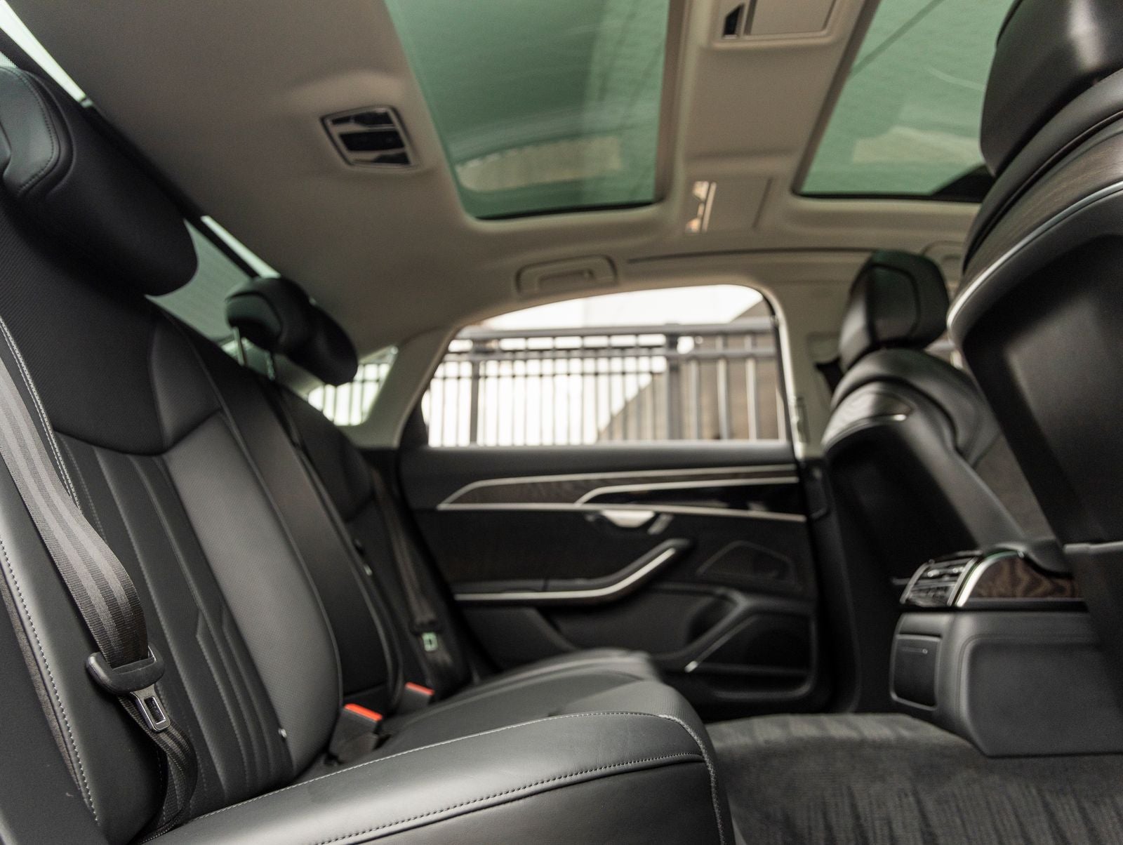 The A8 L stands as a beacon of design and performance, its Mythos Black Metallic exterior not just a color, but a badge of honor that reflects Audi's illustrious luxury heritage. Adorned with elegant multi-spoke alloy wheels and LED Headlights with signature Audi lighting technology, it presents a commanding stance. The long wheelbase design emphasizes comfort and presence, while refined exterior accents enhance its executive appeal.