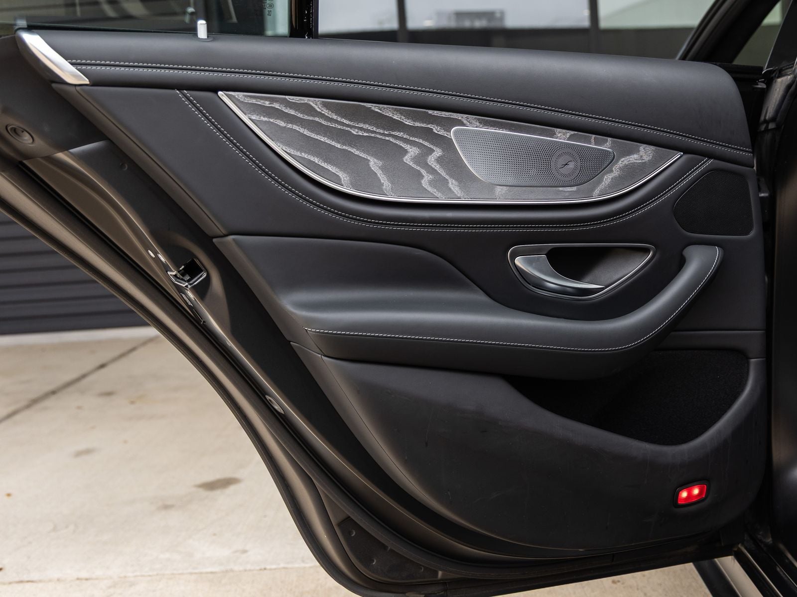 The AMG GT 43 stands as a beacon of bold design and dynamic performance, its MANUFAKTUR Graphite Gray Magno exterior not just a color, but a statement of exclusivity and motorsport-inspired craftsmanship. Its sleek four-door coupe silhouette is accentuated by aggressive body lines, signature AMG styling, and striking 20-inch AMG wheels, creating a commanding and athletic presence on the road.