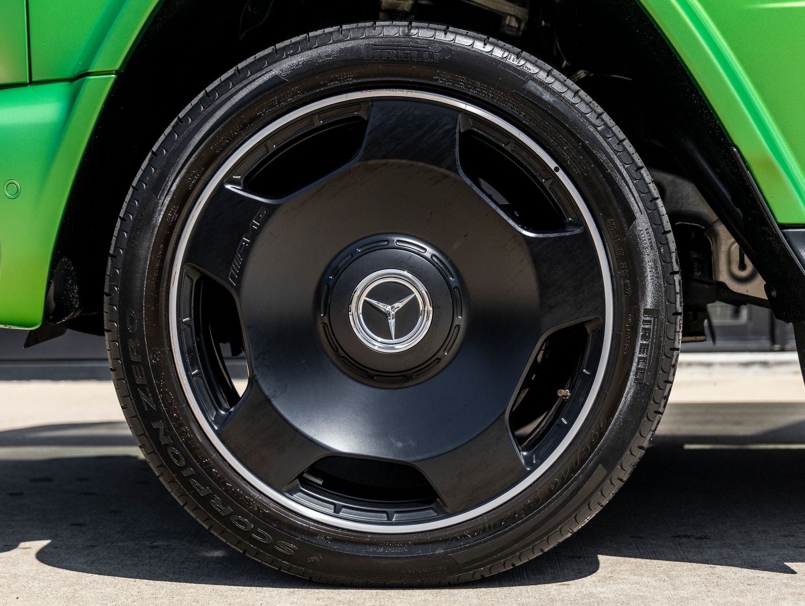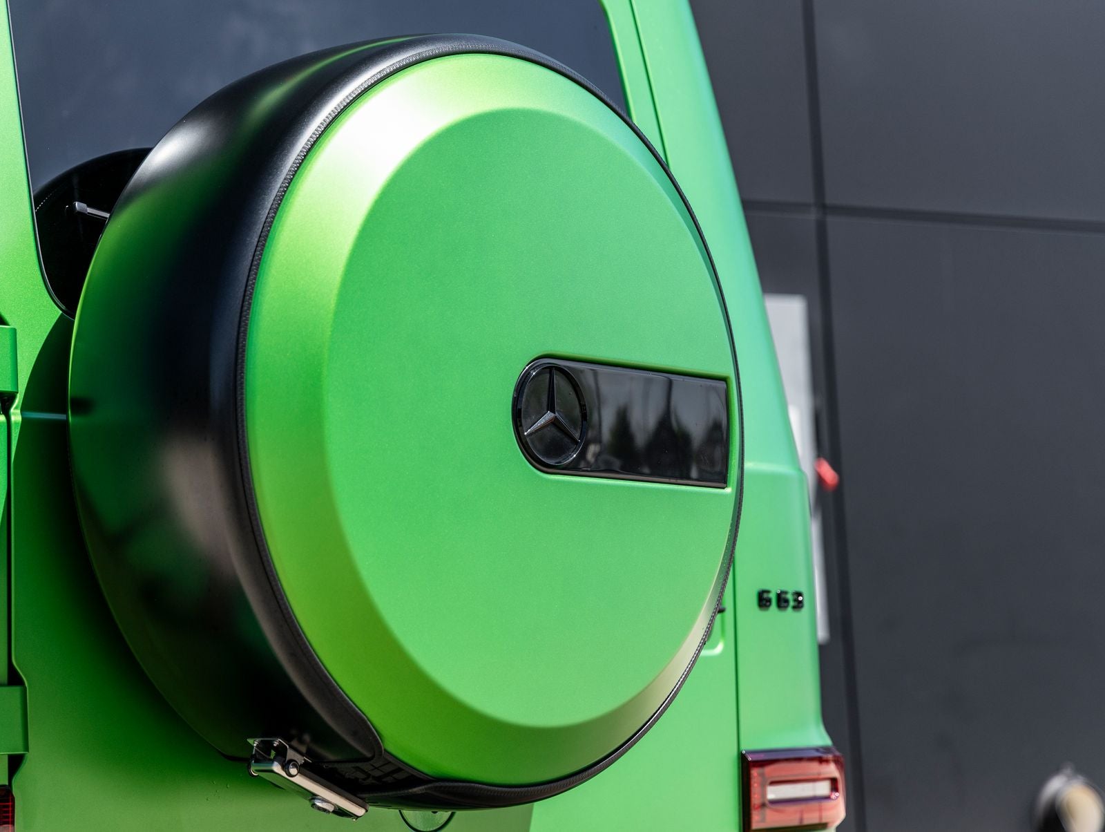 The G 63 AMG stands as an icon of design and performance, its G MANUFAKTUR Green Hell magno exterior not just a color, but a bold statement of exclusivity and presence. With its signature boxy silhouette, aggressive AMG styling, and commanding stance, it exudes confidence from every angle. AMG-specific grille, flared wheel arches, and performance exhaust system further enhance its unmistakable road dominance.
