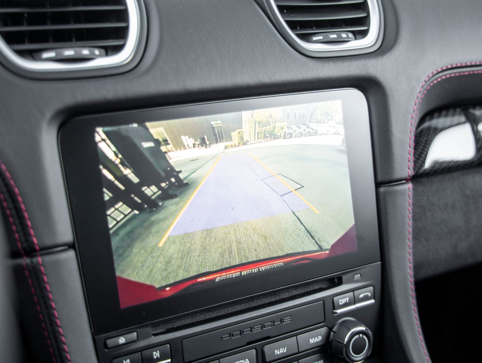 Step inside and the Leather/Race-Tex Interior in Black with Red Stitching greets you, blending motorsport aesthetics with refined craftsmanship. The cabin is highlighted by a Steering Wheel and Gear Lever in Black Leather, Aluminum Pedals and Footrest, and Deviated Red Stitching that accentuates the purposeful cockpit. The result is an environment designed for driver focus while maintaining the premium feel expected from Porsche.