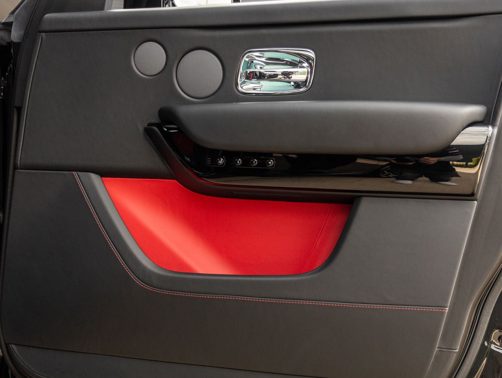 Step inside and the Black / Phoenix Red interior greets you, exuding an air of luxury that only Rolls-Royce can deliver. The Bespoke Interior Module Editing, RR Monogram to all Headrests, and Coloured Stitching in Phoenix Red punctuate the cabin with refined individuality. The Extended Leather Headliner and Shooting Star Headliner elevate the ambiance to a celestial experience, while Piano Black trim and Lambswool Floor Mats showcase the pinnacle of craftsmanship.