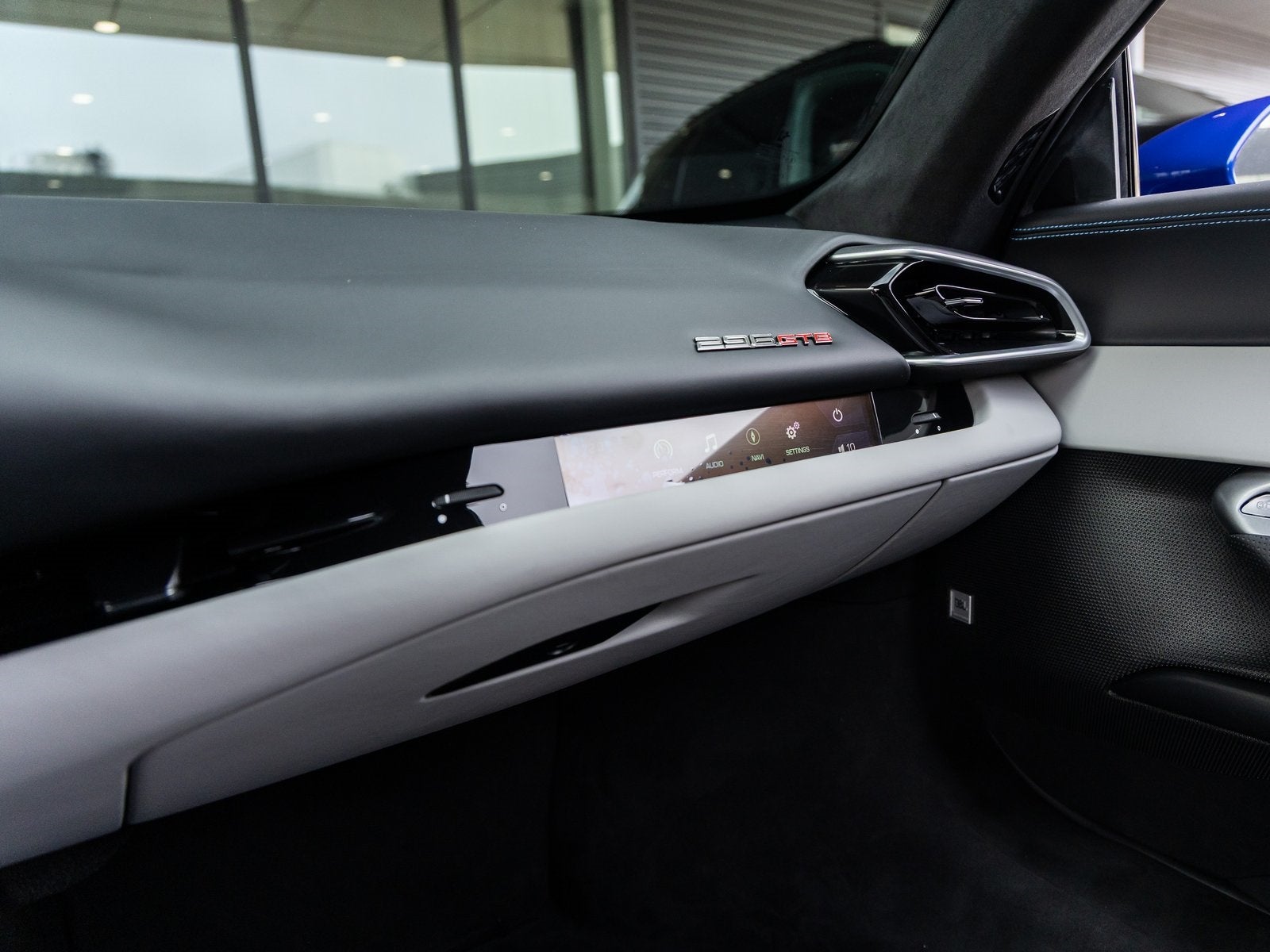 The 296 GTB stands as a beacon of innovation and Italian craftsmanship, its Blu Elettrico exterior commanding attention with elegance and flair. Diamond-polished forged wheels, carbon fiber brake calipers in aluminum, and the signature Scuderia Ferrari shields enhance its striking profile. The Front Lift system and Electrochromic Rear-View Mirror add both functionality and exclusivity to the package.