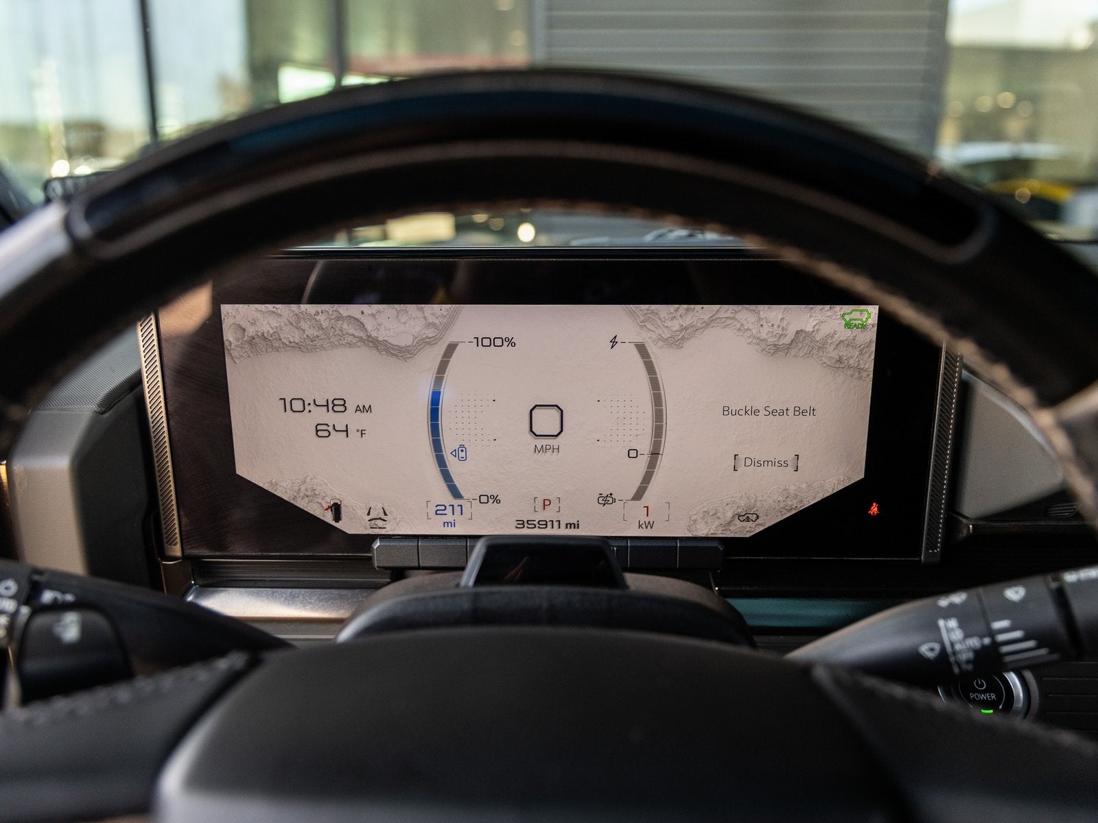 Engine and Performance: This electric powerhouse is driven by a cutting-edge three-motor e4WD system generating an impressive 1,000 horsepower and an estimated 1,200 lb-ft of torque. Instant torque delivery provides thrilling acceleration, while Adaptive Air Ride Suspension, 4-Wheel Steering with CrabWalk, and driver-selectable electronically locking front and rear differentials deliver exceptional control on and off the road. Super Cruise hands-free driver assistance adds confidence and comfort on compatible highways.