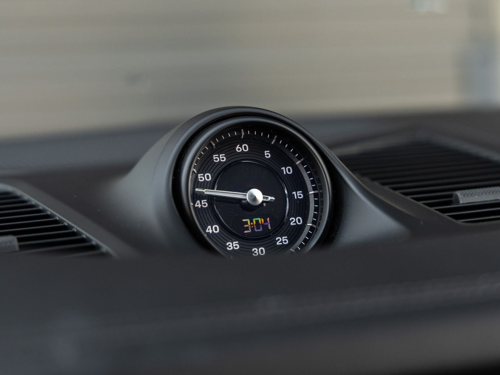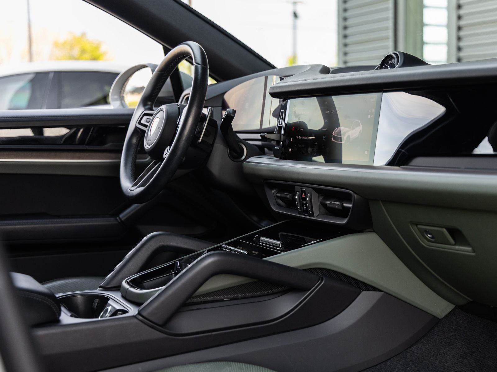 Step inside and the Leather Interior in Black/Night Green welcomes you with a distinctive and refined atmosphere. The Premium Package Plus surrounds you with luxury, including BOSE Surround Sound, Ambient Lighting, and 4-Zone Climate Control. Front seats with ventilation and massage function, along with heated rear seats, ensure exceptional comfort for all passengers. Thoughtful details such as Eucalyptus Interior Trim, Porsche Crests on headrests, and Night Green seat belts elevate the bespoke feel of the cabin.