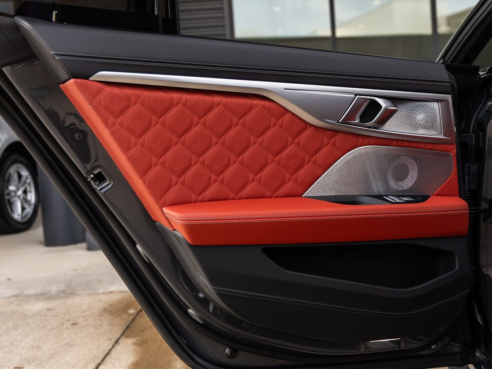 Step inside and the Sakhir Orange/Black Full Leather interior greets you, exuding an air of bespoke craftsmanship and performance-focused luxury. The M Sport Seats with illuminated M logos, Anthracite Alcantara Headliner, and Carbon Fiber Trim create an environment that is both driver-centric and indulgent. Heated and Ventilated Front Seats, Heated Rear Seats, 4-Zone Automatic Climate Control, and Soft-Close Automatic Doors elevate comfort to flagship standards, while the Bowers & Wilkins Diamond Surround Sound System ensures a concert-hall experience on every drive.