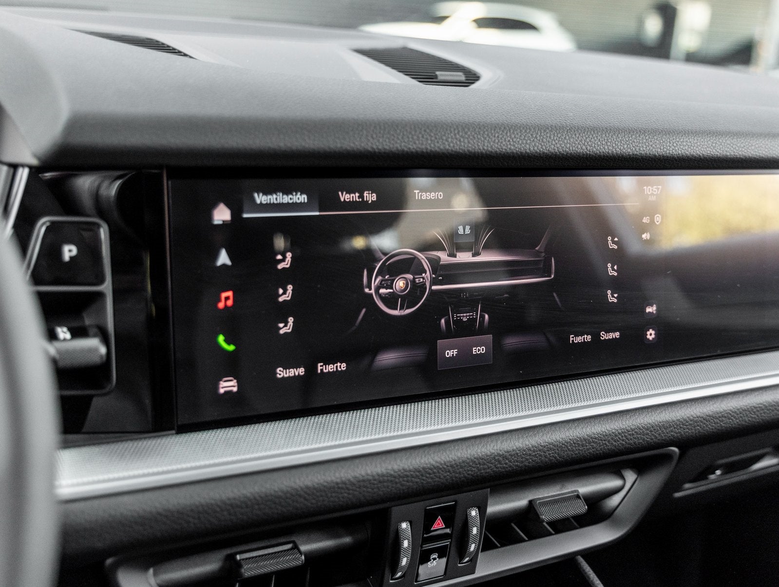 Step inside to experience the Standard Interior in Black, where refined comfort meets cutting-edge technology. The 14-way Power Seats with Comfort Memory, Ventilated Front Seats, and 4-Zone Climate Control ensure every occupant experiences peak comfort. A Panoramic Roof System floods the cabin with natural light, while the BOSE Surround Sound System delivers an immersive audio experience. The cabins flair is enhanced with the Heated GT Sport Steering Wheel in Leather, Porsche Crest on Headrests, and Passenger Display for added exclusivity and digital engagement.