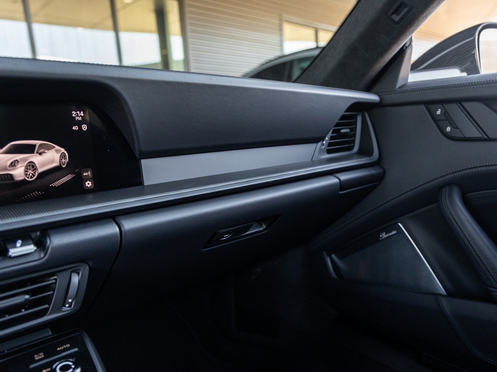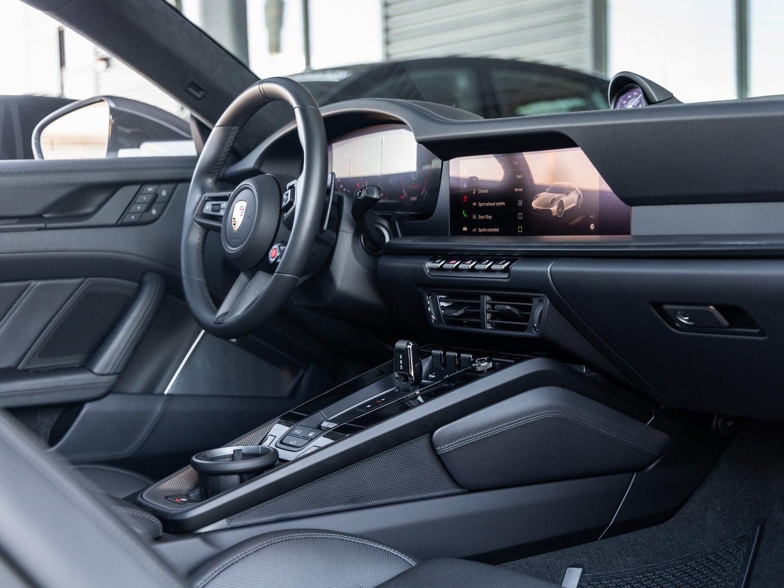 Inside, the Club Leather Interior in Basalt Black exudes handcrafted luxury. Youll find 18-way Adaptive Sport Seats Plus with carbon fiber backrest inlays, Matte Carbon Fiber interior trim, and Silver Grey seat belts adding unique contrast. Other upscale touches include Illuminated Matte Carbon Fiber Door Sill Guards, Center Console Lid with Porsche Crest, and the Heated GT Sport Steering Wheel