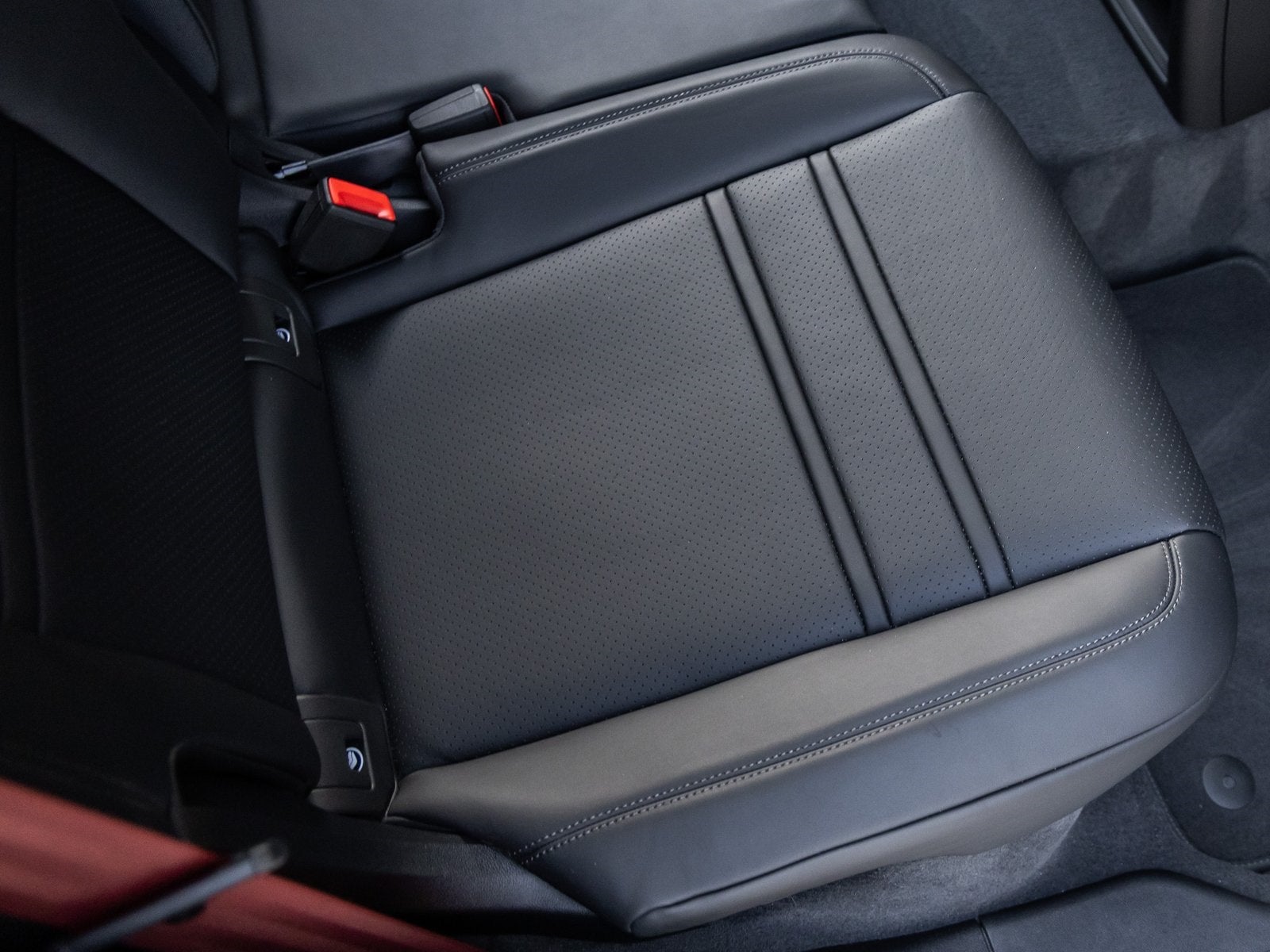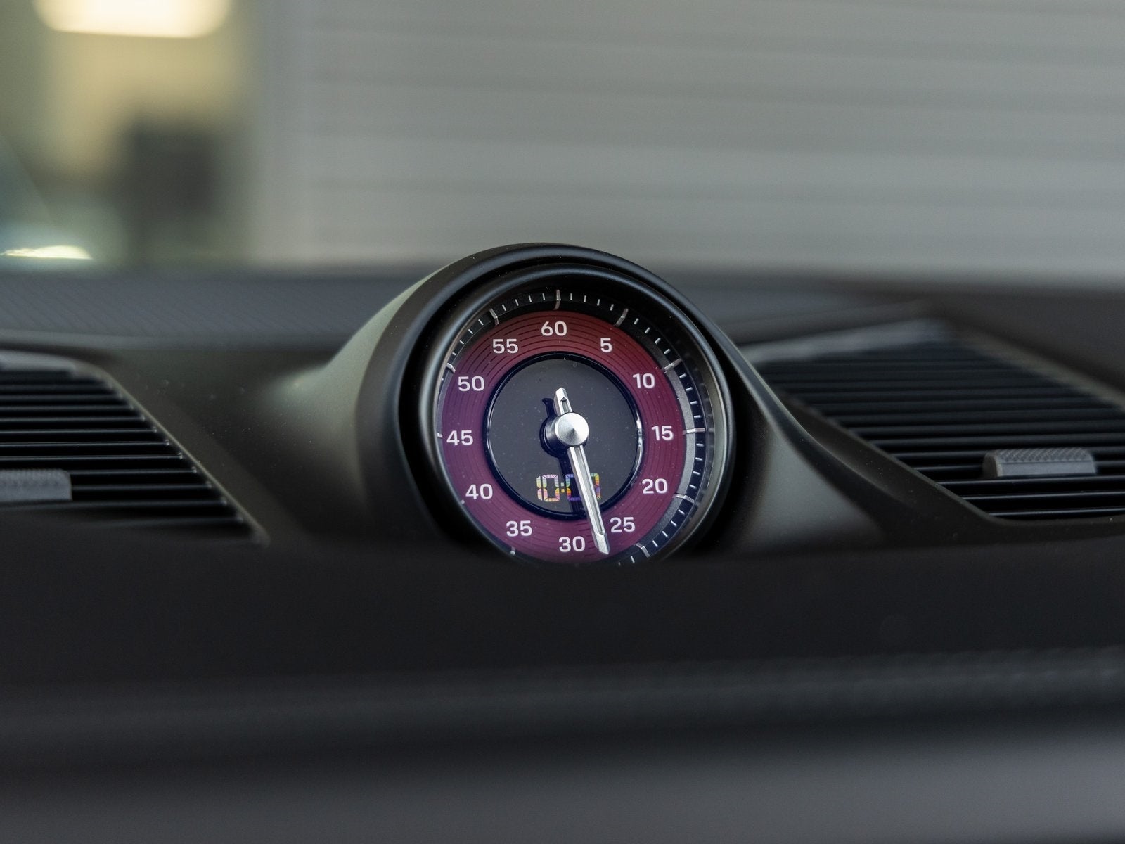 Step inside and the Leather Interior in Black greets you, exuding an air of luxury that only Porsche can deliver. Bordeaux Red seat belts and the Sport Chrono Stopwatch in Bordeaux Red add a subtle performance flair. Comfort features abound, including 14-way Power Seats with Comfort Memory, Ventilated Front Seats, Heated Rear Seats, and a Heated GT Sport Steering Wheel in Leather. The Porsche Crest on the front headrests and Passenger Display speak to a bespoke level of craftsmanship.