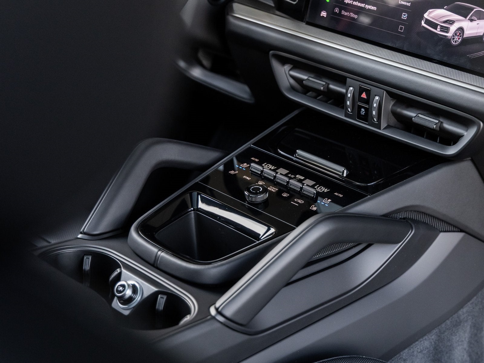 The Cayenne S Coupe stands as a beacon of design and performance, its Chromite Black Metallic exterior not just a color, but a badge of honor that reflects Porsche's illustrious engineering heritage. Adorned with striking 22 Exclusive Design Sport Wheels in Chromite Black Metallic and Exclusive Design Taillights, it presents an unmistakable and assertive presence. The Sport Exhaust System with Silver Tailpipes and Model Designation in High Gloss Black amplify its athletic aesthetic, while the Adaptive Air Suspension with Porsche Active Suspension Management (PASM) ensures a refined yet dynamic ride.