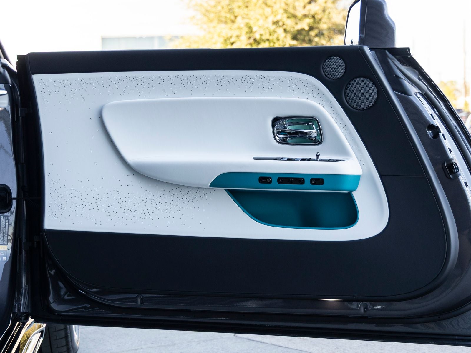 Step inside and the Black, Turchese, and Arctic White bespoke interior greets you, exuding an air of luxury that only Rolls-Royce can deliver. The Shooting Star Headliner and Starlight Doors create a celestial ambiance, while the Extended Leather Headliner and Illuminated Fascia elevate cabin refinement. Ventilated Massage Seats, RR Monograms on all headrests, and Open Pore Blackwood trim complete an interior that is both indulgent and meticulously crafted.