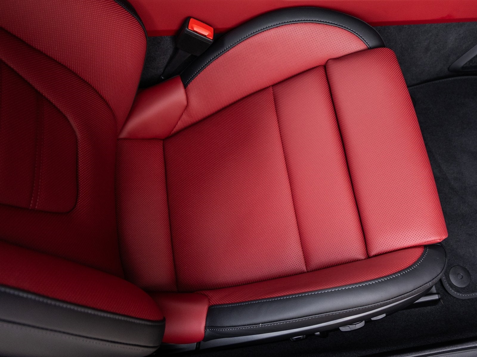 Step inside and the Leather Interior in Black/Bordeaux Red greets you with unmistakable Porsche craftsmanship. Adaptive Sport Seats Plus (18-way) with Memory Package provide exceptional comfort and support, complemented by a Heated GT Sport Steering Wheel in Leather. The 930 Leather Package, Interior Trim Inlays in Leather with Light Silver accents, and Center Console Lid with Model Designation elevate the cabins bespoke feel. Ventilated Front Seats, BOSE Surround Sound System, Porsche Crests on Headrests, and Under Door Puddle Light Projectors complete the refined yet performance-focused interior.