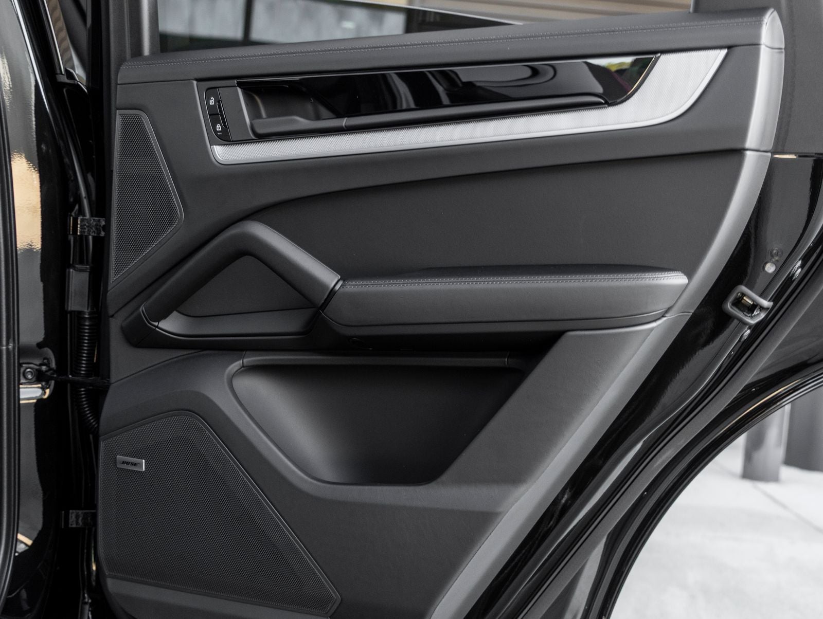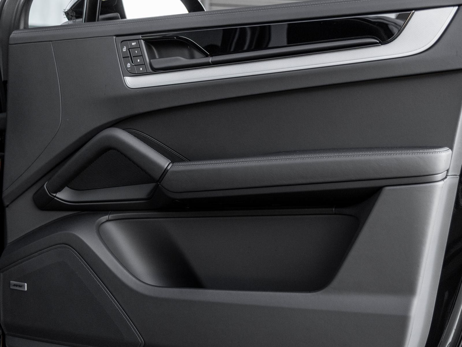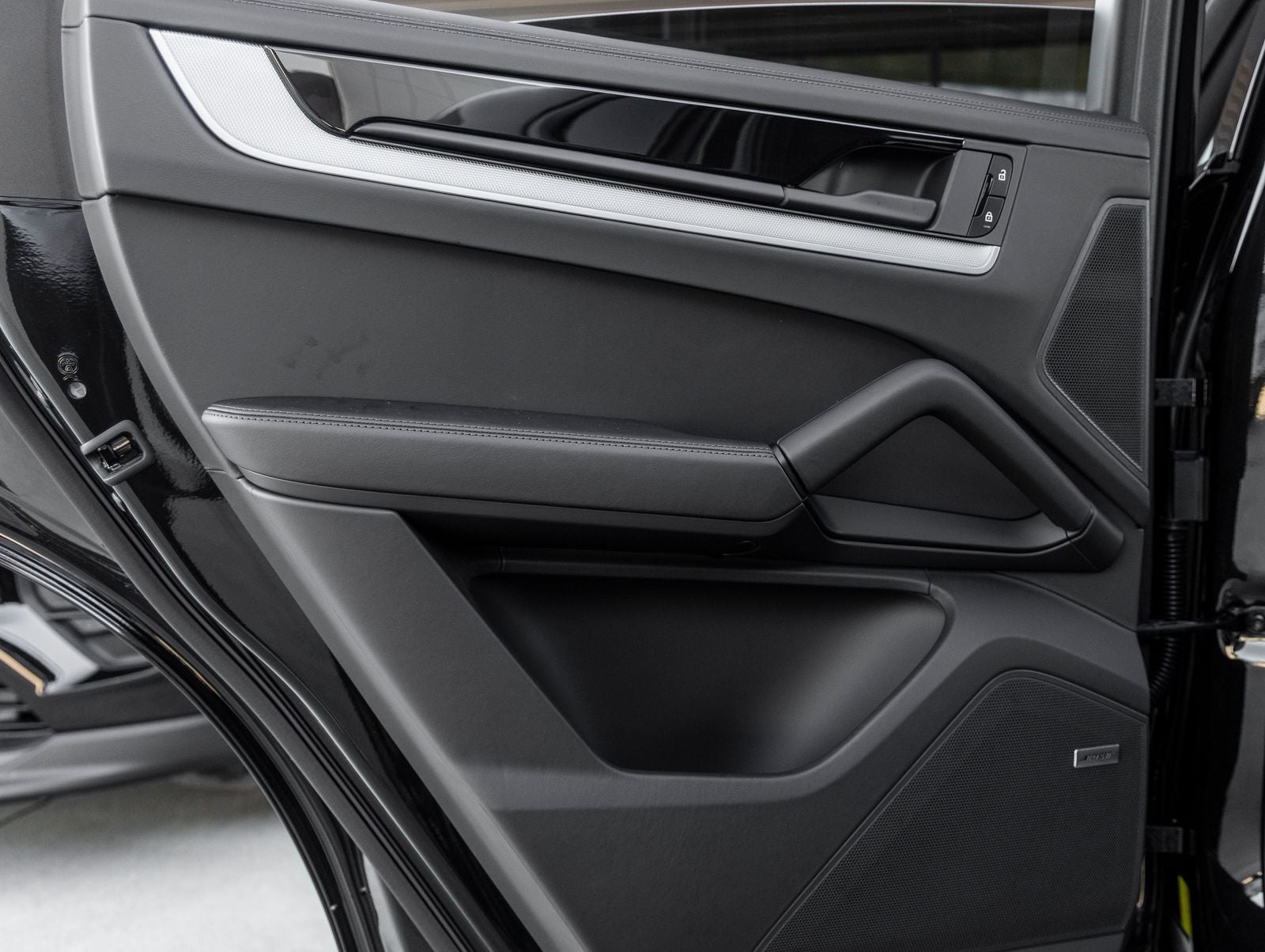 The Cayenne Coupe asserts itself with a powerful silhouette, enhanced by its 21 RS Spyder Design Wheels in High Gloss Black and Sport Tailpipes in Dark Bronze, blending sporty flair with refined elegance. The HD-Matrix Design LED Headlights offer an unmistakable front-end presence while providing superb visibility. Under Door Puddle Light Projectors and the Porsche Crest on Headrests (Front) add bespoke touches to an already exquisite design.
