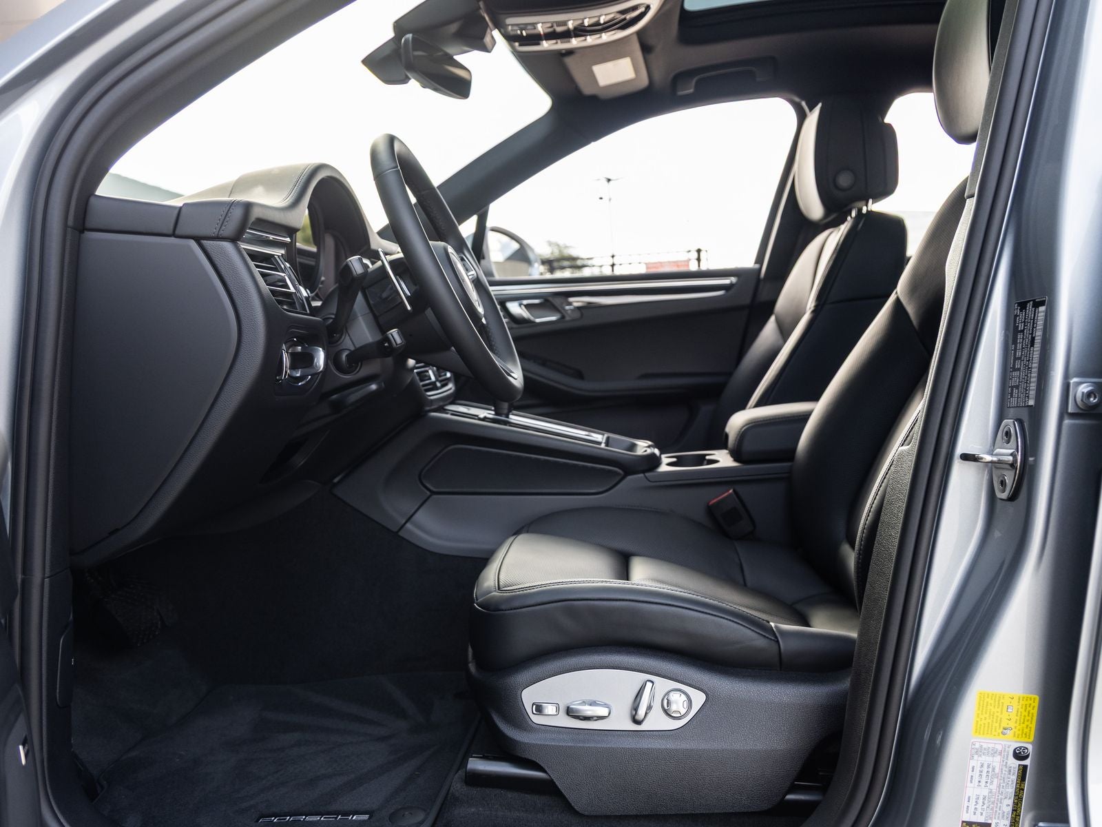The Macan stands as a beacon of design and performance, its Dolomite Silver Metallic exterior not just a color, but a badge of honor that reflects Porsche's illustrious design language. Adorned with 21 911 Turbo Wheels, Sport Tailpipes in Silver, and Roof Rails in High Gloss Black, it presents a bold and dynamic stance. The Sport Chrono Package elevates its performance capabilities, while subtle enhancements like the Deletion of Model Designation on Rear and Wheel Center Caps with Colored Porsche Crest underscore its refined details.
