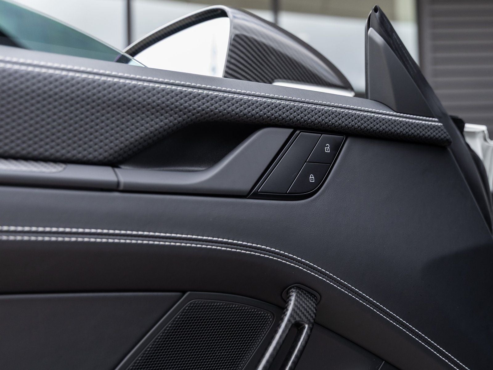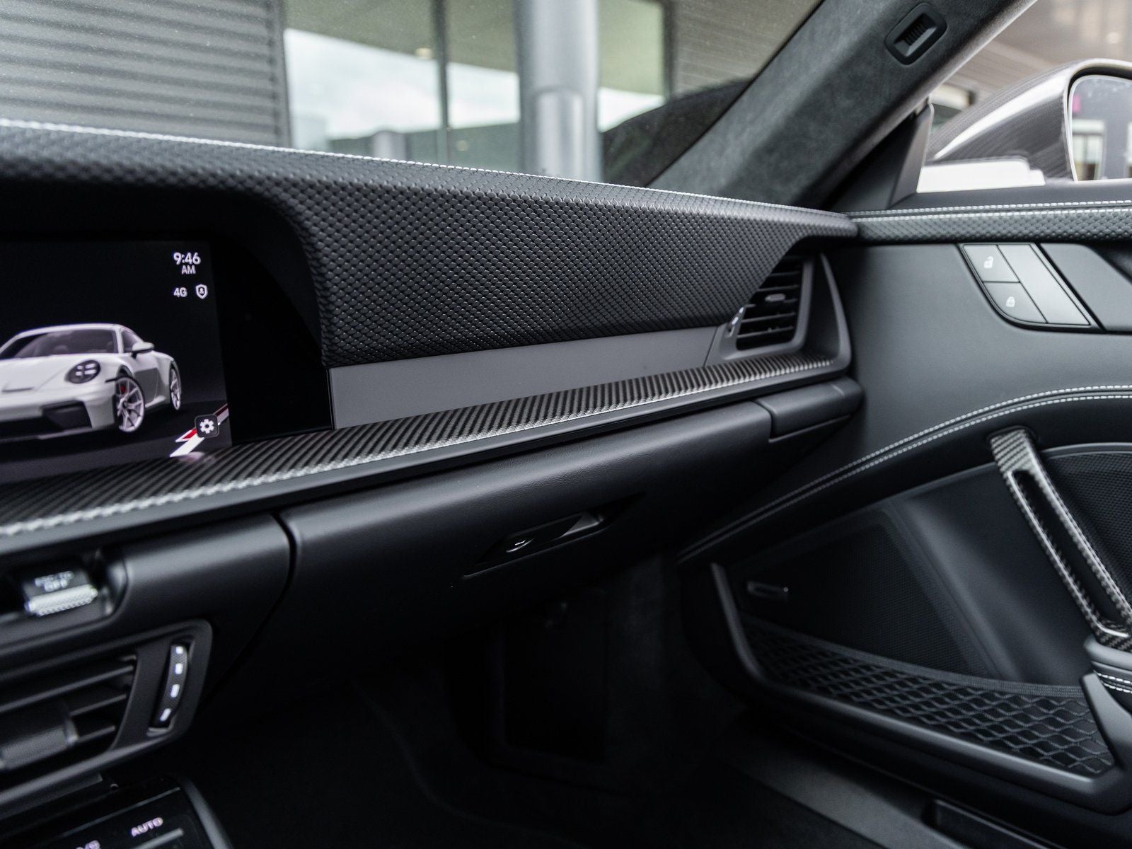 Step inside and the Leather Interior in Black with Fabric Seat Centers and GT Silver Stitching welcomes you with race-inspired refinement. Folding Lightweight Bucket Seats provide exceptional support, complemented by the Extended Dashboard in Leather and Steering Column Casing in Leather. Race-Tex appointments throughout the cabin, along with Illuminated Door-Sill Guards in Matte Carbon Fiber, highlight the GT3s meticulous craftsmanship. A BOSE Surround Sound System delivers premium audio performance for every drive.