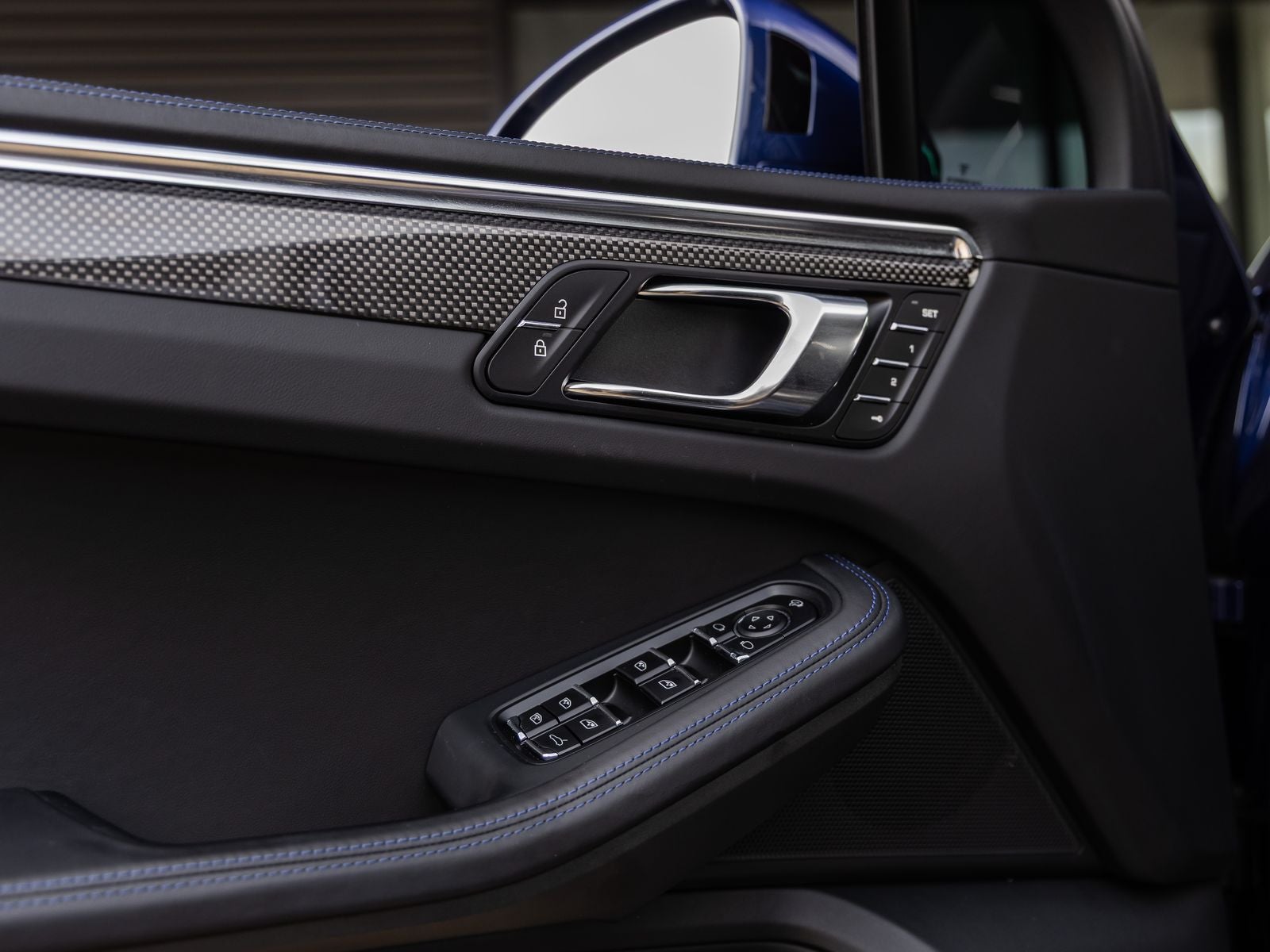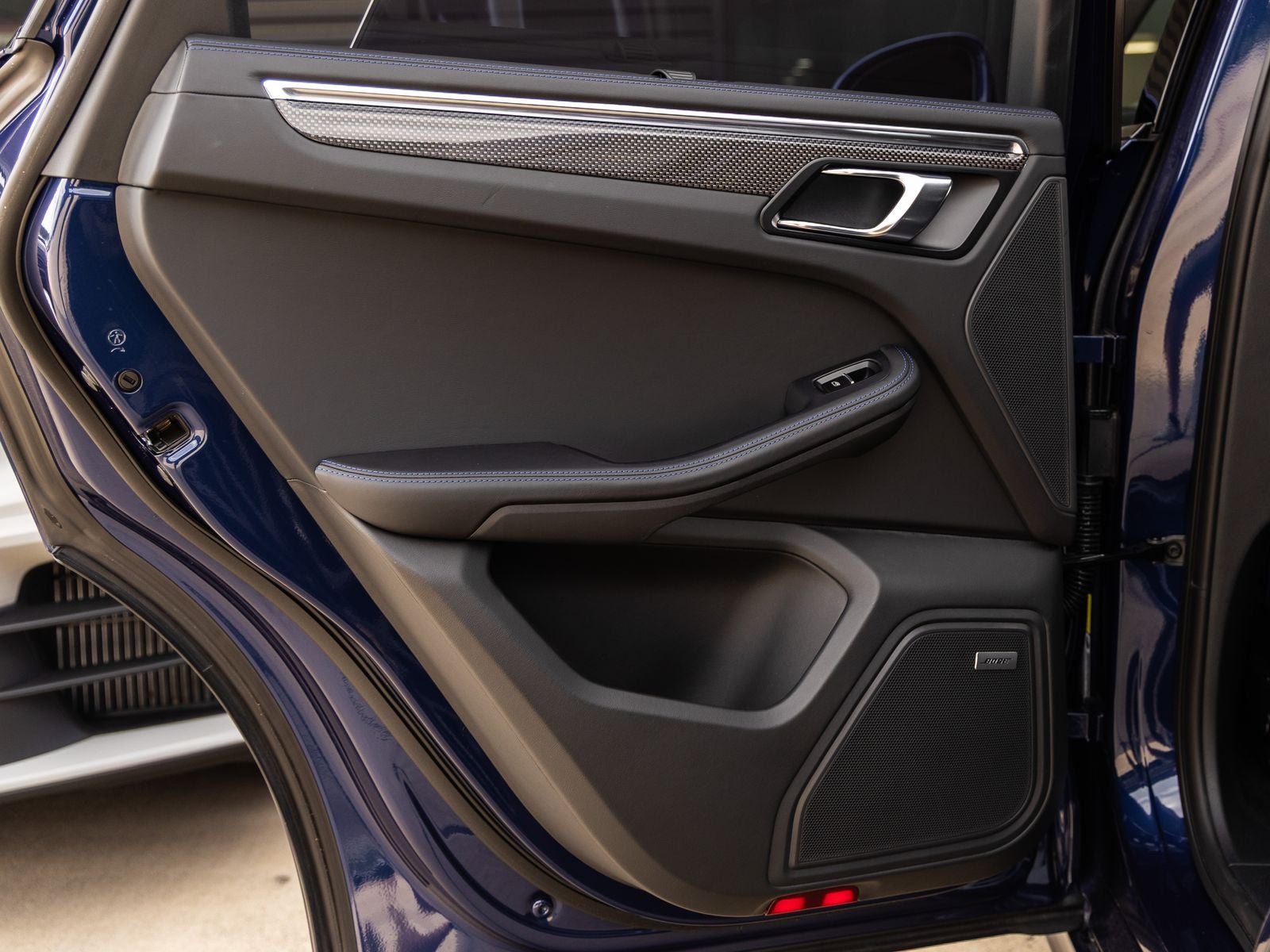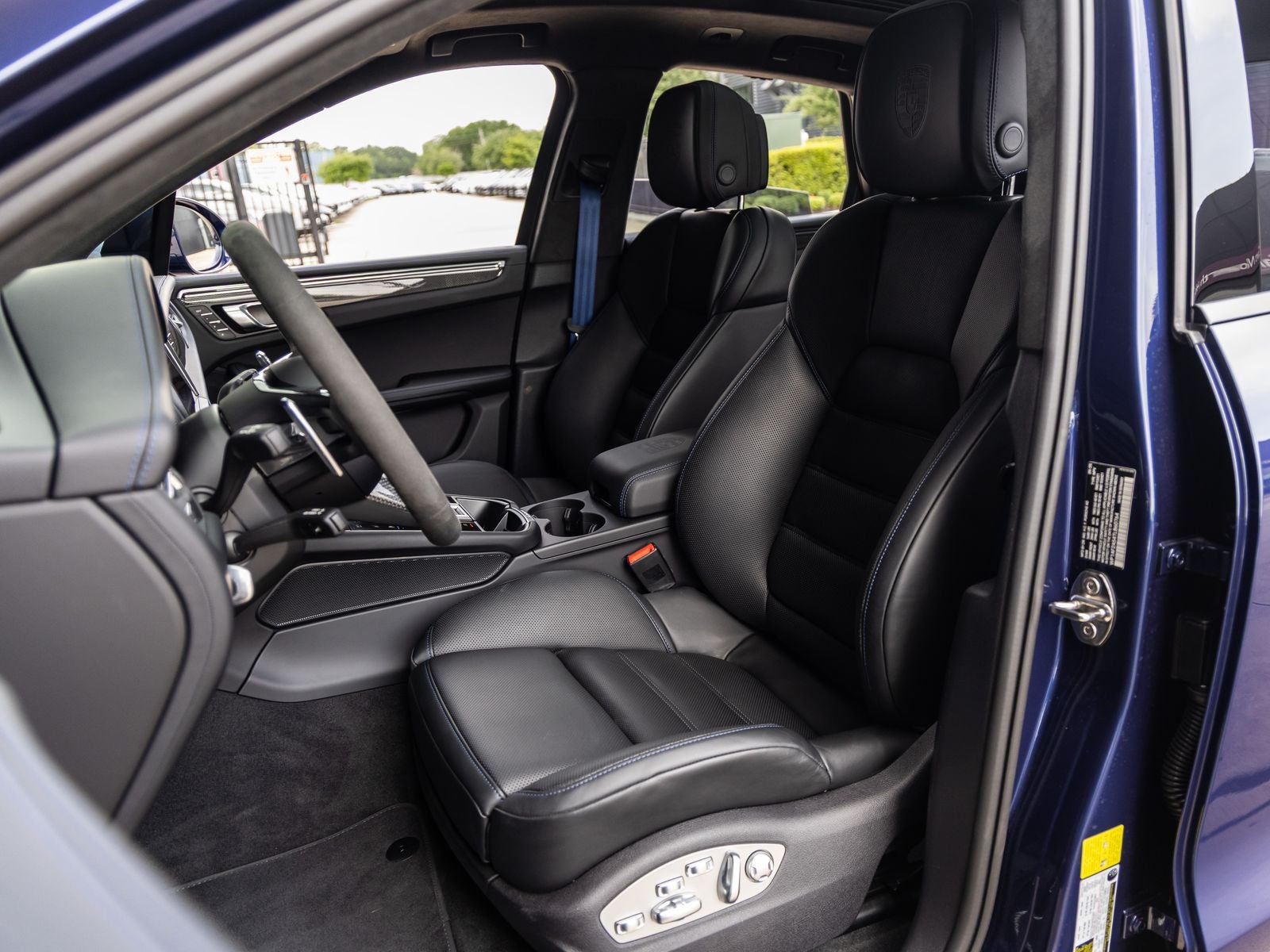 Step inside and the Leather Interior in Black with Deviated Stitching in Gentian Blue greets you, exuding an air of bespoke craftsmanship that only Porsche can deliver. The cabin is richly appointed with carbon fiber trim, Race-Tex roof lining, and illuminated carbon fiber door-sill guards. Adaptive Sport Seats Plus (18-way) with memory, along with heated and ventilated seating, ensure exceptional comfort, while fine details like Bordeaux Red instrument dials add a unique and sporty flair.